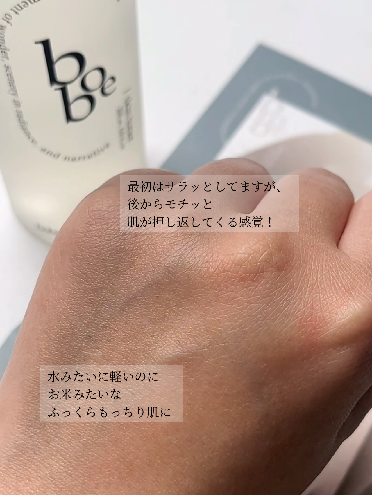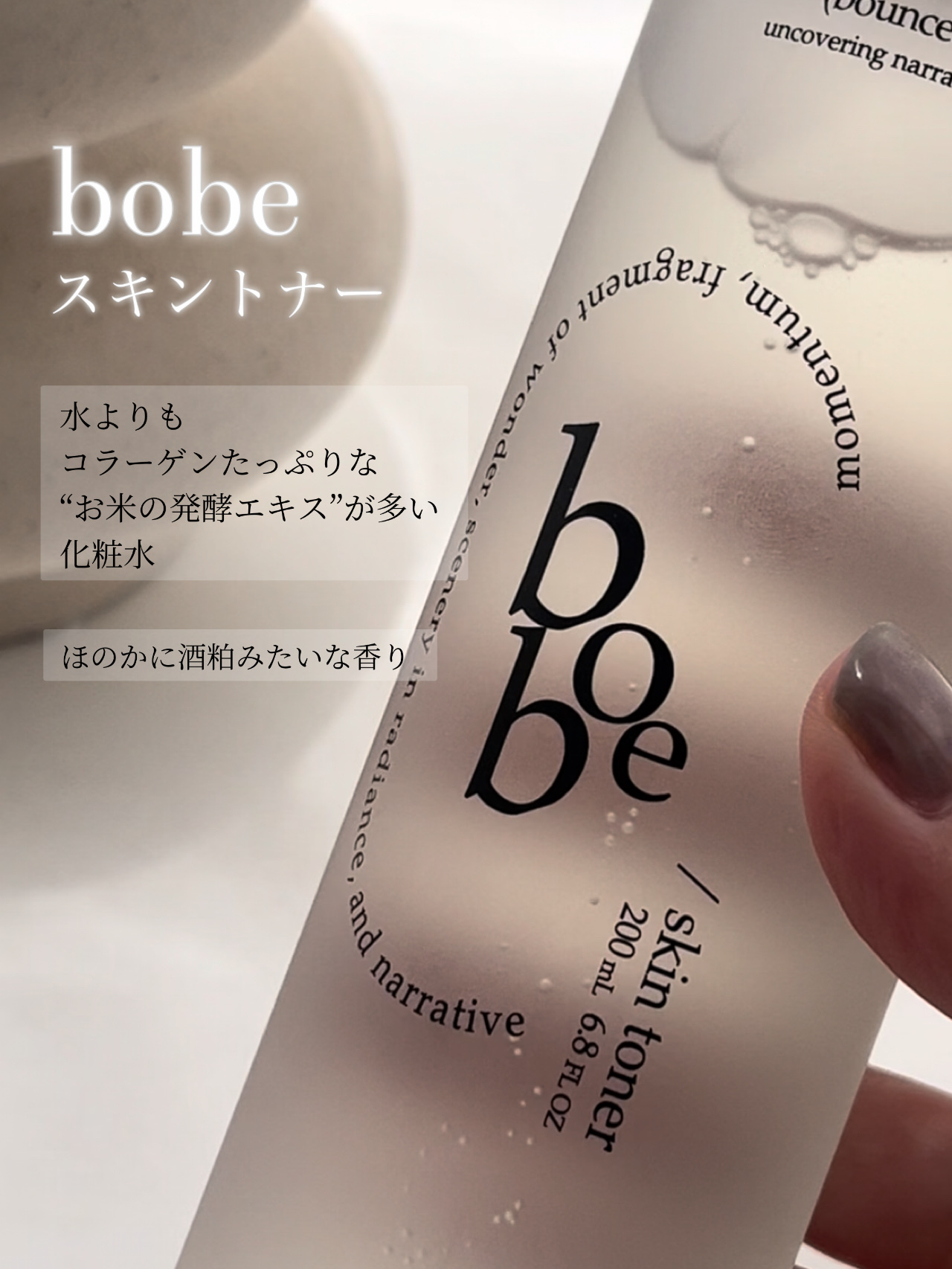 発酵コラーゲンに着目されたスキンケアで、肌本来の美しさを育みます◎ 水の代替え原料として「発酵コラーゲン水*」を使用しているスキンケアとなっています♪ bobe SKIN TONERは肌なじみさっぱりとした発酵化粧水◎ スーッと角質層まで吸い込まれる、さらっとしたテクスチャーが特徴のトナー◎ ローションパックとして部分集中ケアをするのもおすすめだそう! パシャパシャとたっぷりと馴染ませられる化粧水! スイスイ吸い込まれるので、3回くらい馴染ませました♪ さっぱりとした使用感が良いです◎