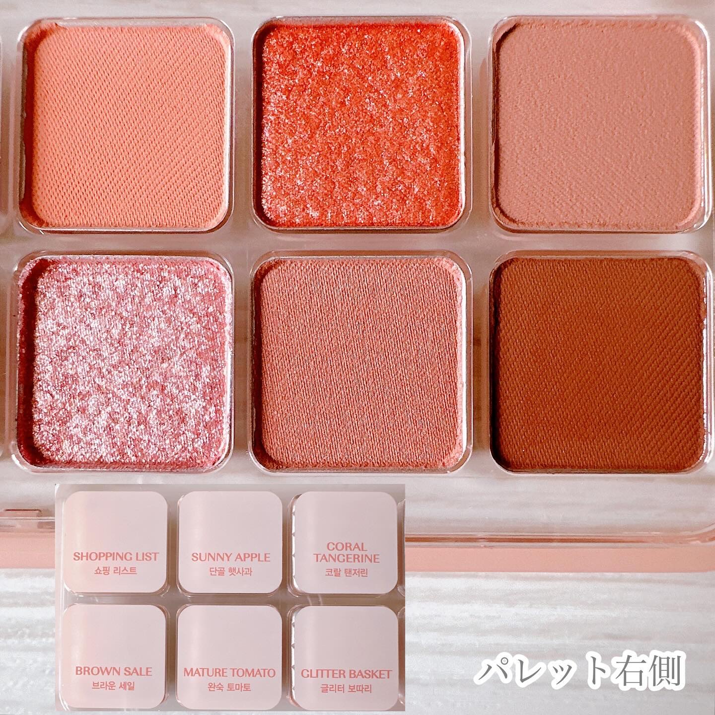 - 軽やかテクスチャーが目元に密着し、抜け感のある色使いが楽しめるデイリーパレット <101 ローズダイアリー(ROSE DIARY)> オーナメントを飾り付けたローズツリーのようにほのかに輝くウォームローズピンクカラー(イエベ秋)。 <102 ミュートアーカイブ(MUTE ARCHIVE)> 少女たちのピンキーなホームパーティームードを盛り込んだクールでヌーディーなミューテッドモブカラー(ブルべ夏ミュート)。 <103 バニラヘイズ(VANILLA HAZE)> 焼きたてのジンジャークッキーのように暖かく香ばしいウォームミュートカラー(イエベ秋ミュート)。 <104 GHR ピンク(GYEONGHOERU FLOWER FESTIVAL)> 春の日の美しく優雅な色を詰め込んだピンクカラーパレット。イエベ春&ブルベ夏におすすめのパレットです。 <105 DSG バイオレット(DEOKSUGUNG STONE WALL ROAD)> ほんのりピンクがかった柔らかなモーブカラーパレット。ブルベ夏&ブルベ冬におすすめのパレットです。 <106 DBG コーラル(GYEONGBOKGUNG STROLL)> 明るい日差しの色を取り入れたデイリーなコーラルカラー。イエベ春&ブライト秋におすすめのパレットです。