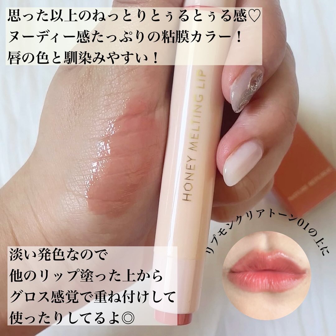 ネイチャーリパブリックハニーメルティングリップ11シースルーピンク12シースルーグレー¥1,320プランパー初心者向け🔰温熱感のあるファーミング効果でボリューミーな唇へ💋いい感じのピリピリで重すぎないからこの後のリップも付けやすい🙆♀️保湿...