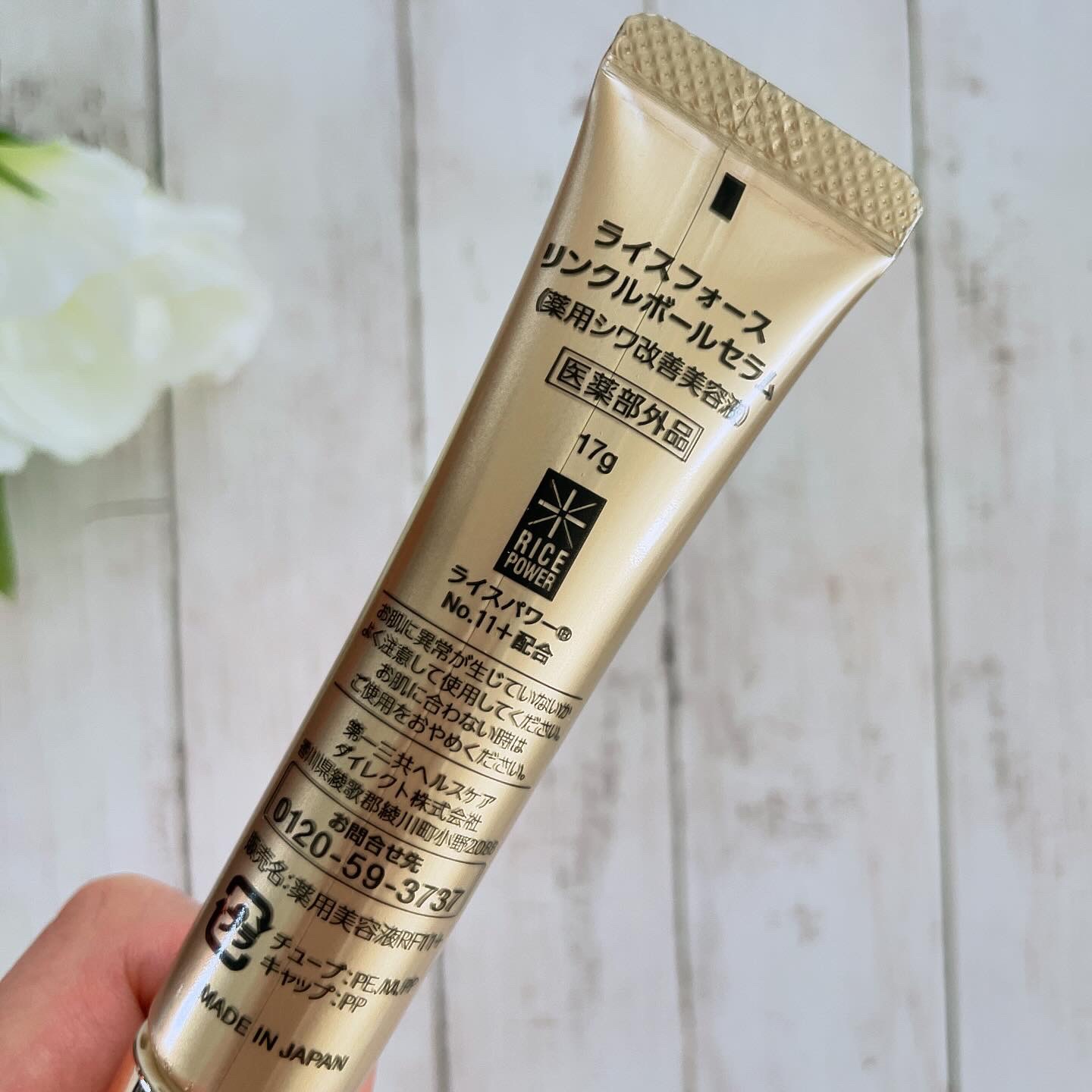 シワと皮膚水分保持、ダブルの改善効果 極小のボールでシワの細部まで届く 肌の水分保持とシワ改善、肌荒れ防止効果をもつ有効成分を配合しているので、大人の悩みにアプローチしてくれるのが助かります。 テクスチャーはみずみずしいセラムで、ボールを軽くコロコロと転がすと目元がしっとり、ふっくらと仕上がります。
