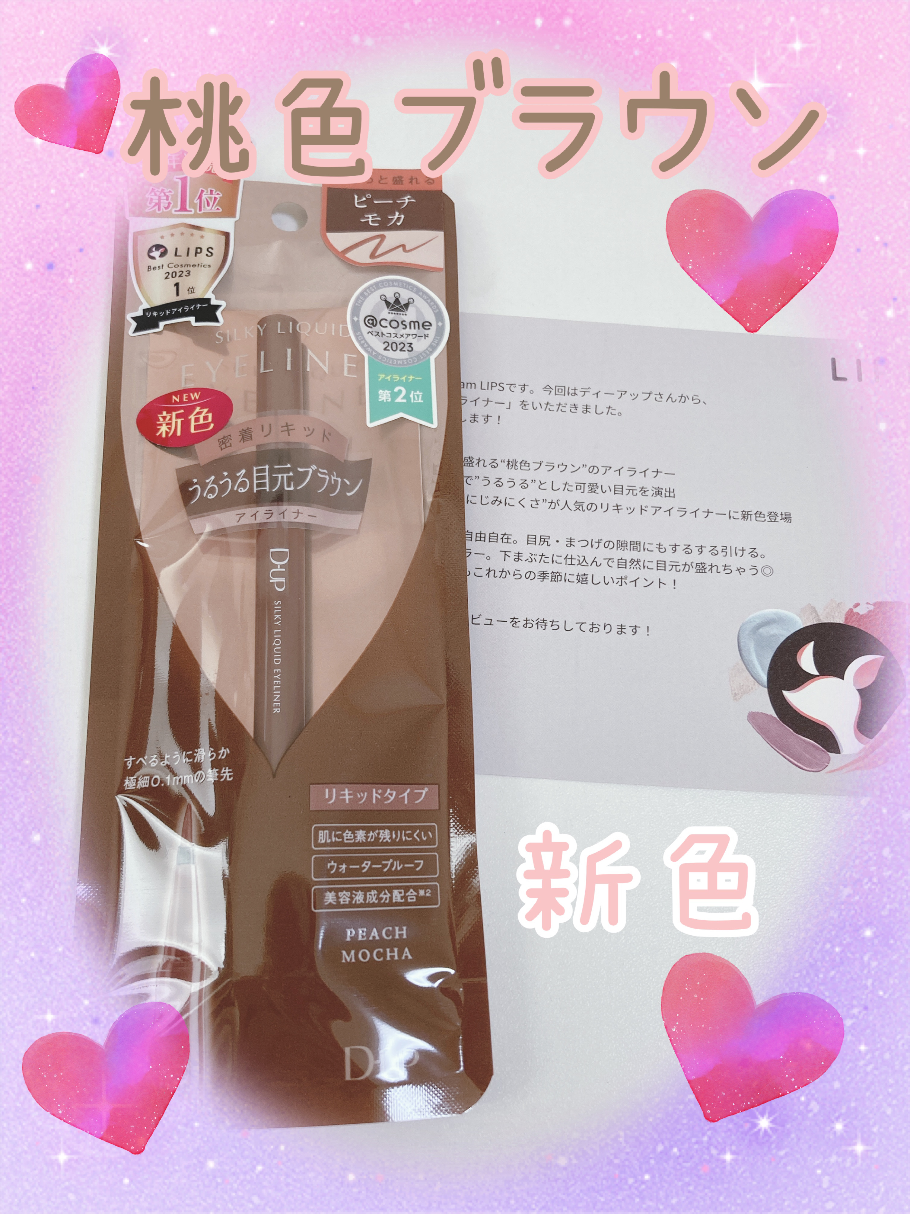 アイメイクの洒落度が増した気がする😍 普通にアイラインとして使うのも可愛いんだけど、粘膜にひくと目力増して写真写りも良くなる✌️♥️ D-UP シルキーリキッドアイライナーWP ピーチモカ ↑↑↑ほんと可愛いからチェックしてみて🫶