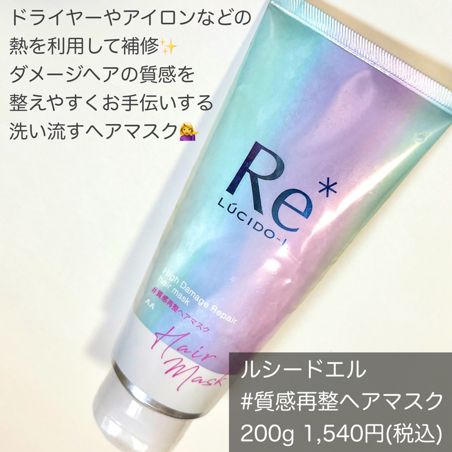 ルシードエル#質感再整ヘアマスク200g/¥1,540(税込)ダメージを髪内部から集中補修🌟うねり・広がりを抑えて毛先まですとんとまり、美しい髪に再び整える✨ヘアアイロンやドライヤーの熱を利用する、酸熱トリートメント成分配合🥰ヘアケア効果が促...