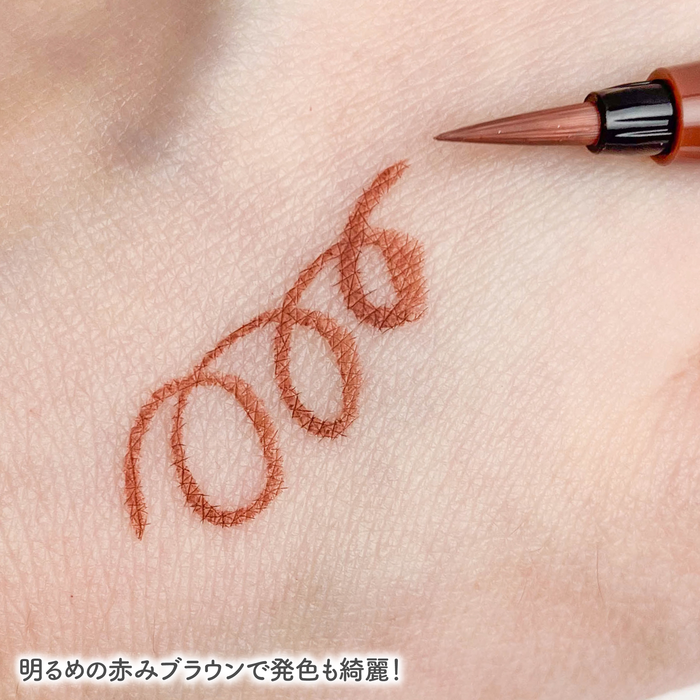 - 筆先までずっとなめらか、目尻で感動するリキッドアイライナー。 必要な量が肌にのる新設計で、まぶたの上をすべるような、滑らかな描き心地。しなやかでコシのある筆が、筆圧のコントロールを容易にし、太いラインも細いラインも思い通りに仕上げます。水、汗、涙に強いウォータープルーフタイプなのに、通常洗顔で簡単オフ。肌に色素が残らない顔料を使用。5種類の美容液成分を従来品の200%配合し、メイクしながら目元ケアまで。 ●ブラウンブラック ※2020年9月12日 バラエティショップ先行発売 ●漆黒ブラック ※2020年12月頃発売予定 ●ナチュラルブラウン ※2020年12月頃発売予定 ●シフォンブラウン 「毎日メイクに透明感と抜け感」 ブラウンでも、グレーでも、ベージュでもないニュアンスカラー。 自然な印影で素の目元を際立て、頑張りすぎない、ふんわりとした目元に。 ●アプリコットブラウン 「じゅわっと血色感。 肌に馴染むおしゃれカラー」 温かみのあるアプリコットがじゅわっと滲む血色感を目元に演出。 肌馴染みが良いので、カラーライナーに抵抗がある方もブラウンの延長線上で楽しめる、使いやすい色味です。 ”ちょっとオシャレ”な空気感を演出するカラー。 ●ピンクショコラ アイライナー 「ピンクが溶け込む濃厚ブラウン」 肌馴染みが良く、目元にじんわり血色感をプラス。 さりげなく女性らしさが加速するようなカラー。 ●ピスタチオラテ (2022年7月29日(金)発売) 「“目尻”に抜け感アクセント」 肌に馴染むのに映える絶妙なグリーン。 トレンドカラーに“くすみ”と“抜け感”をプラスしたまろやかな発色。 ●マスタードブラウン 「“イエロー”が揺れる、大人の洒落色」 (2022年7月29日(金)発売) まるで太陽のような暖かさを感じる新しいブラウン。 ほんのり感じるイエローでメイクが一気に垢抜ける稀有な色。 ●シフォンピンク(2023年2月10日発売) 「ふんわり柔らか"まろみピンク"」 甘くなりすぎない青みニュアンスで目元の透明感UP。 目元を引き締め、ピンクメイクにありがちな腫れぼったさを解消。 ●ミルクカプチーノ(2023年4月21日発売) まろやかな深みの“優しい締め色” どんなメイクにも合わせやすいカラー。 自然な陰影でさりげなく目幅を拡張します。 ●グレーカシミア(2023年10月1日発売) ブラウンがほんのり溶け込んだ、暖色グレー まろやかな発色で、パーソナルカラーを問わず肌に馴染む 目元の陰影になりすまし、抜け感と目力を欲張りに叶える ●ダークフィグ(2024年6月1日発売) するする”なめらか。描きやすいのに、落ちにくい。 クッキリ可愛いほの甘ダークブラウン ●ピーチモカ(2024年8月1日発売) ふわっと自然に盛れる“桃色ブラウン” ほんのり血色感で目元にうるみ感を演出 ●スターダストブラウン(2024年12月11日発売) キラッと繊細に輝く''星屑ブラウン'' 透け感のあるダークブラウンの色味とラメの輝きが、目元に艶のある立体感を演出 ●チャコールモカ(2025年4月10日発売) 目元を締める''深みグレージュ'' 黄みや赤みに偏りすぎない絶妙な色設計で、自然に目元を強調