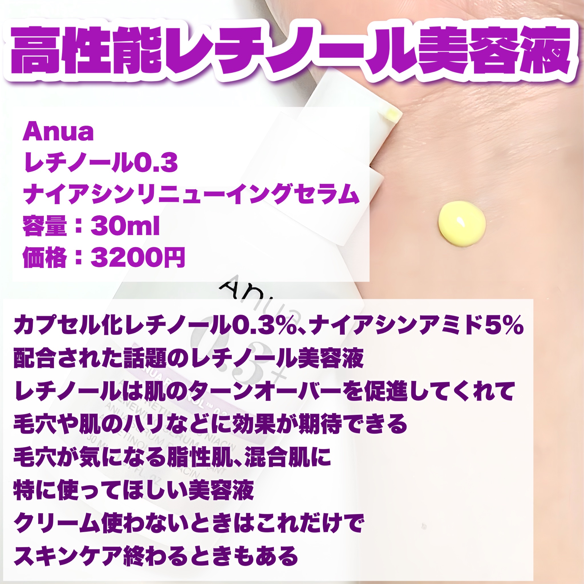 Anua レチノール0.3 ナイアシンリニューイングセラム | 3,200円 |