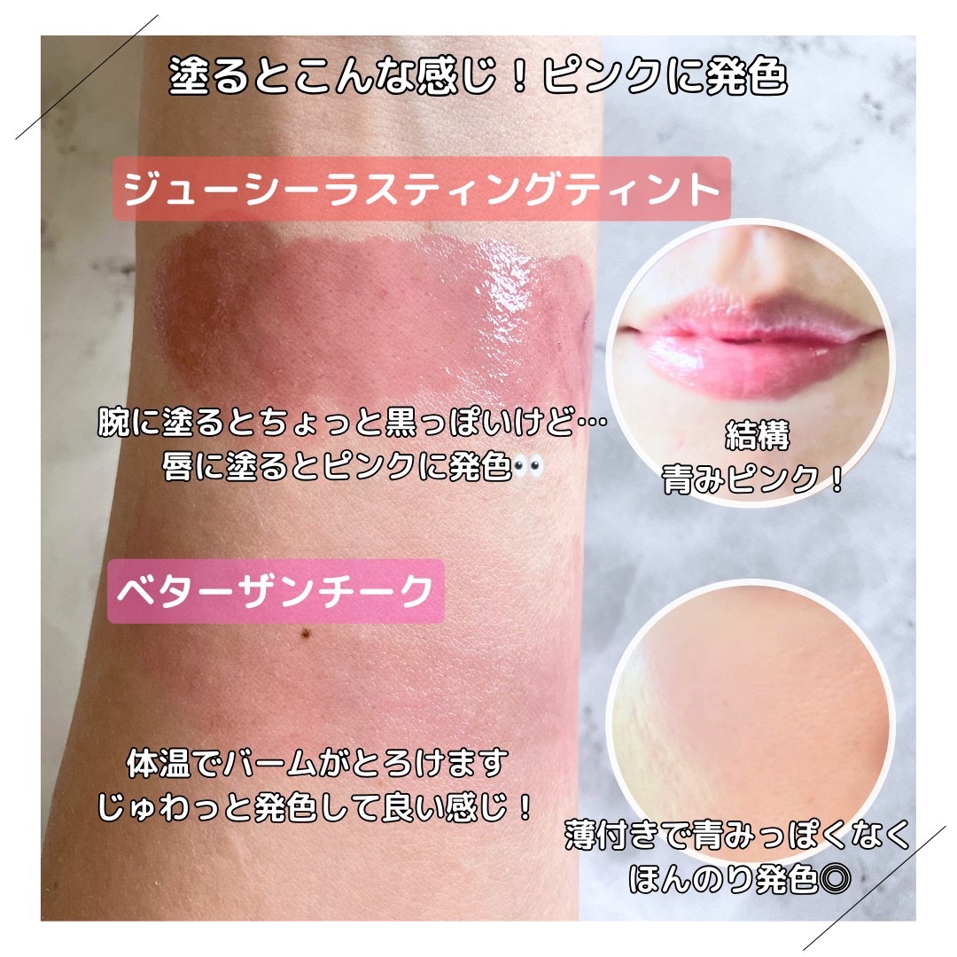 見た目は黒いのに肌につけた瞬間ピンクっぽく発色するのが不思議すぎて…🥹🧪💫 17 ベリーインブラックとB03 ブラックバームは自分の肌の温度、pH濃度、身体の水分濃度によって発色がそれぞれ異なる製品←これは自分だけの発色っという事ですよね… ブルベ向きカラーですが可愛いのでつけています👄