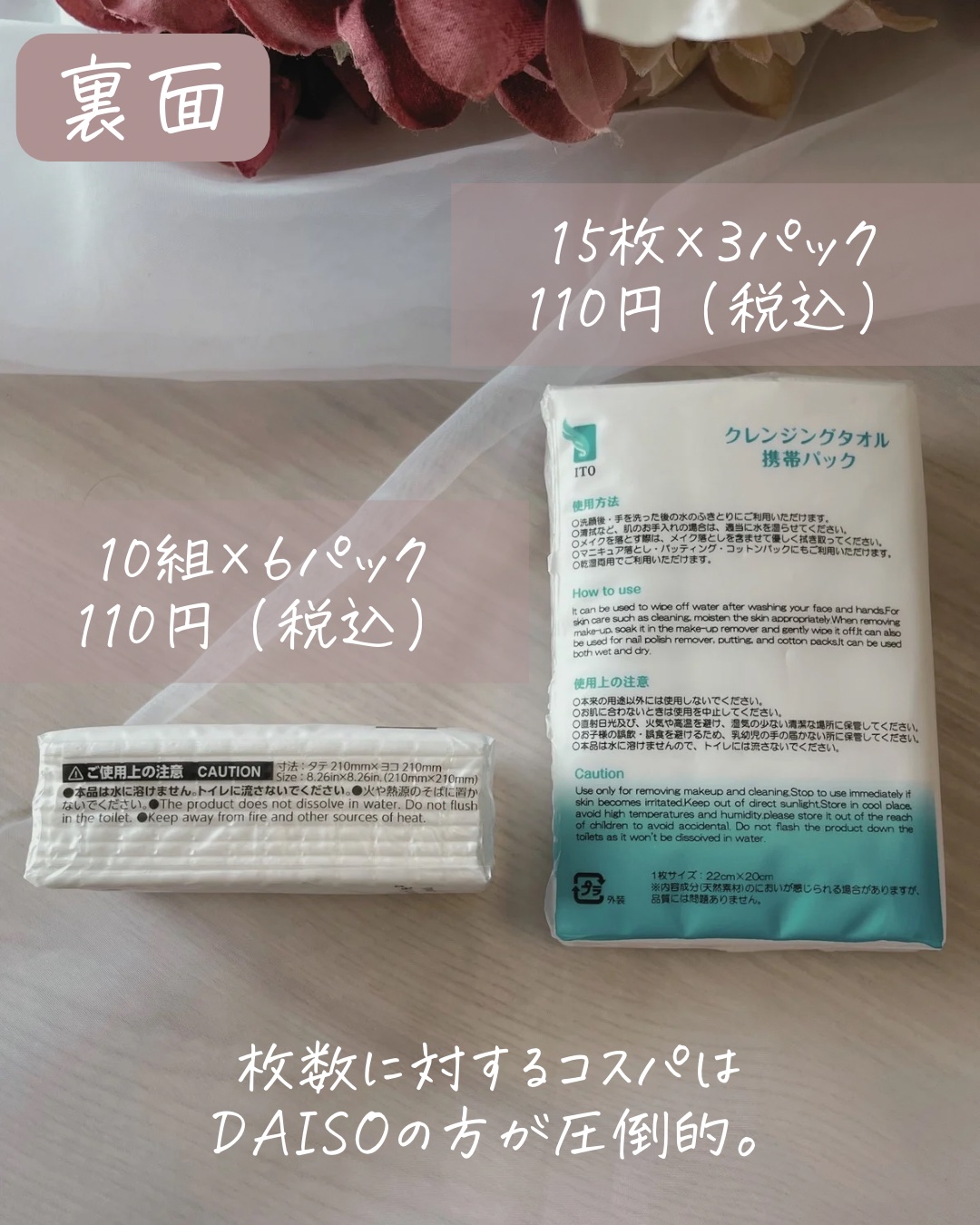 DAISO購入品✨ITOクレンジングタオル携帯パック15枚✕2パック(22cm×20cm)ITOのクレンジングタオルの携帯パックがDAISOで購入できました♡携帯パックはコンパクトなので、持ち運びに便利!!旅行のときにすごく便利だなと感じまし...