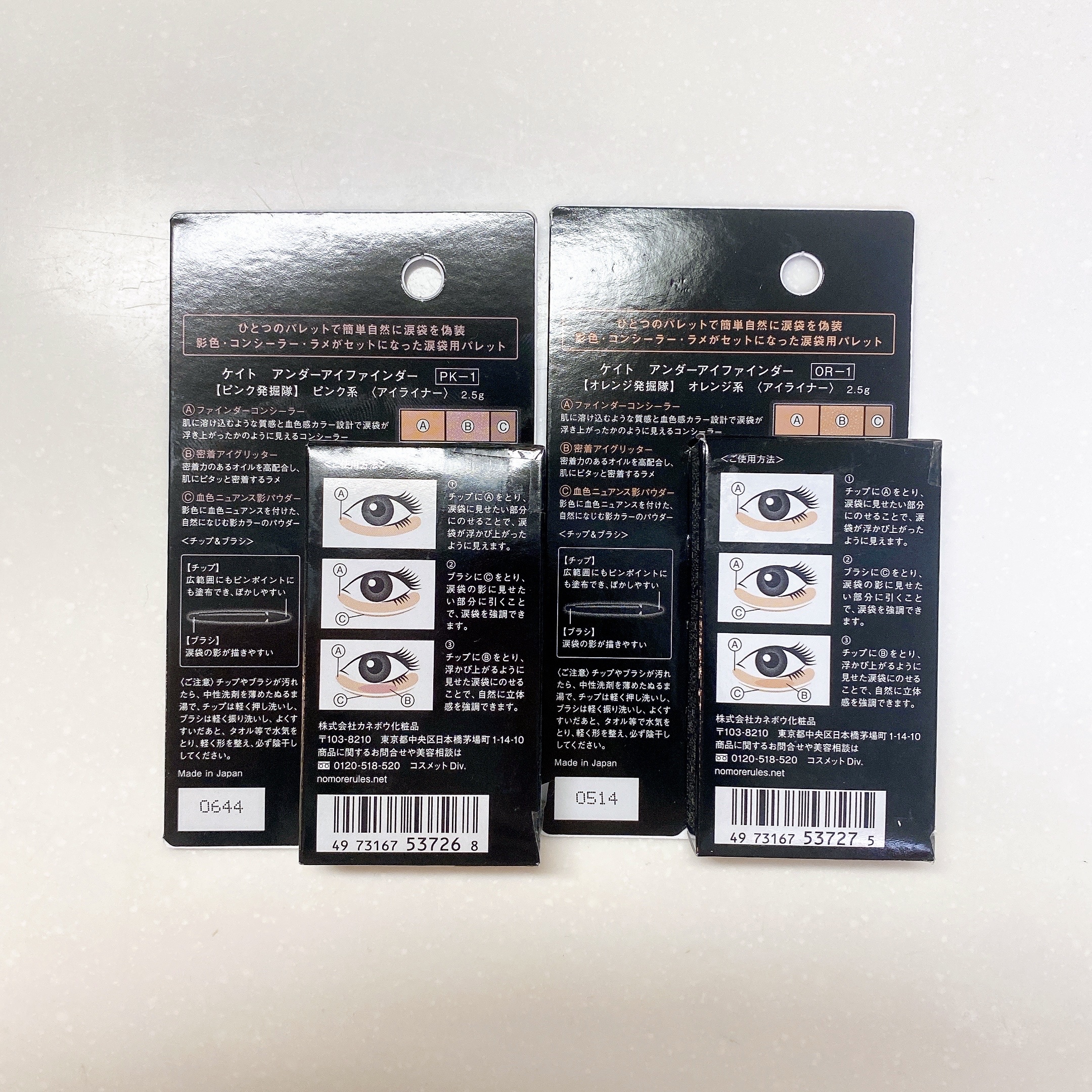 - 数量限定発売 ひとつのパレットで簡単自然に涙袋を偽装。 影色・コンシーラー・ラメがセットになった #涙袋発掘パレット 涙袋を偽装して浮かび上がらせて見せる処方・色設計 ◆鏡つきコンパクト ■ファインダーコンシーラー:肌に溶け込むような質感と明るく赤みのある血色感カラー設計 ■密着アイグリッター:密着力のあるオイル高配合処方 ■血色ニュアンス影パウダー:影色に血色ニュアンスを付けて自然になじむ影カラー ■全2種 OR-1 オレンジ系。PK-1 ピンク系。