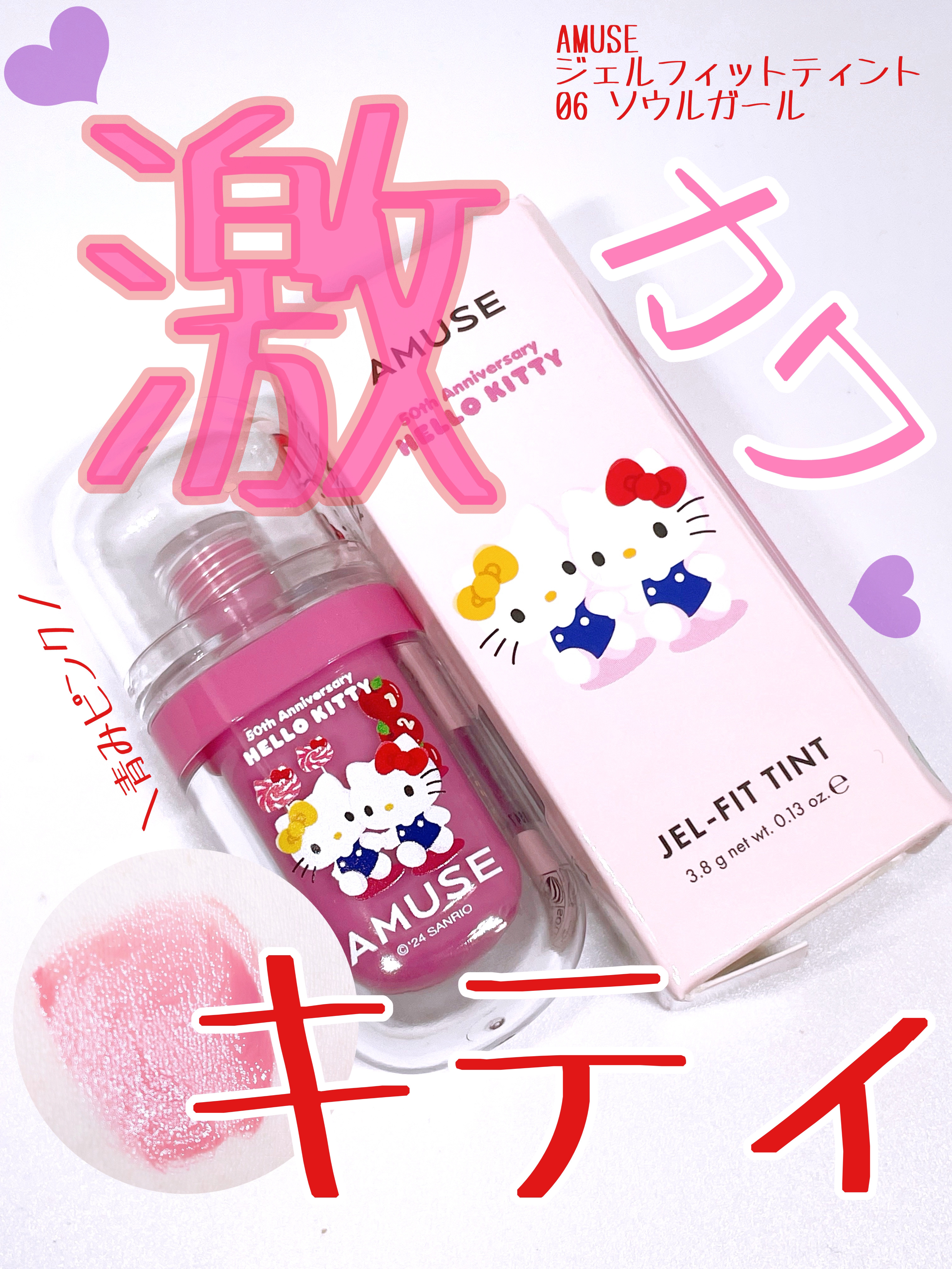 #AMUSEジェルフィットティント10ピーチベビー日焼けキティとのコラボが可愛すぎる🌺💕ピーチベビーはイエベ向きのカラーで特にイエベ春の方に似合いそうな色味です🍑ブルベの方は、06番のソウルガールがBEST✨日焼けハローキティのコラボは、他に...