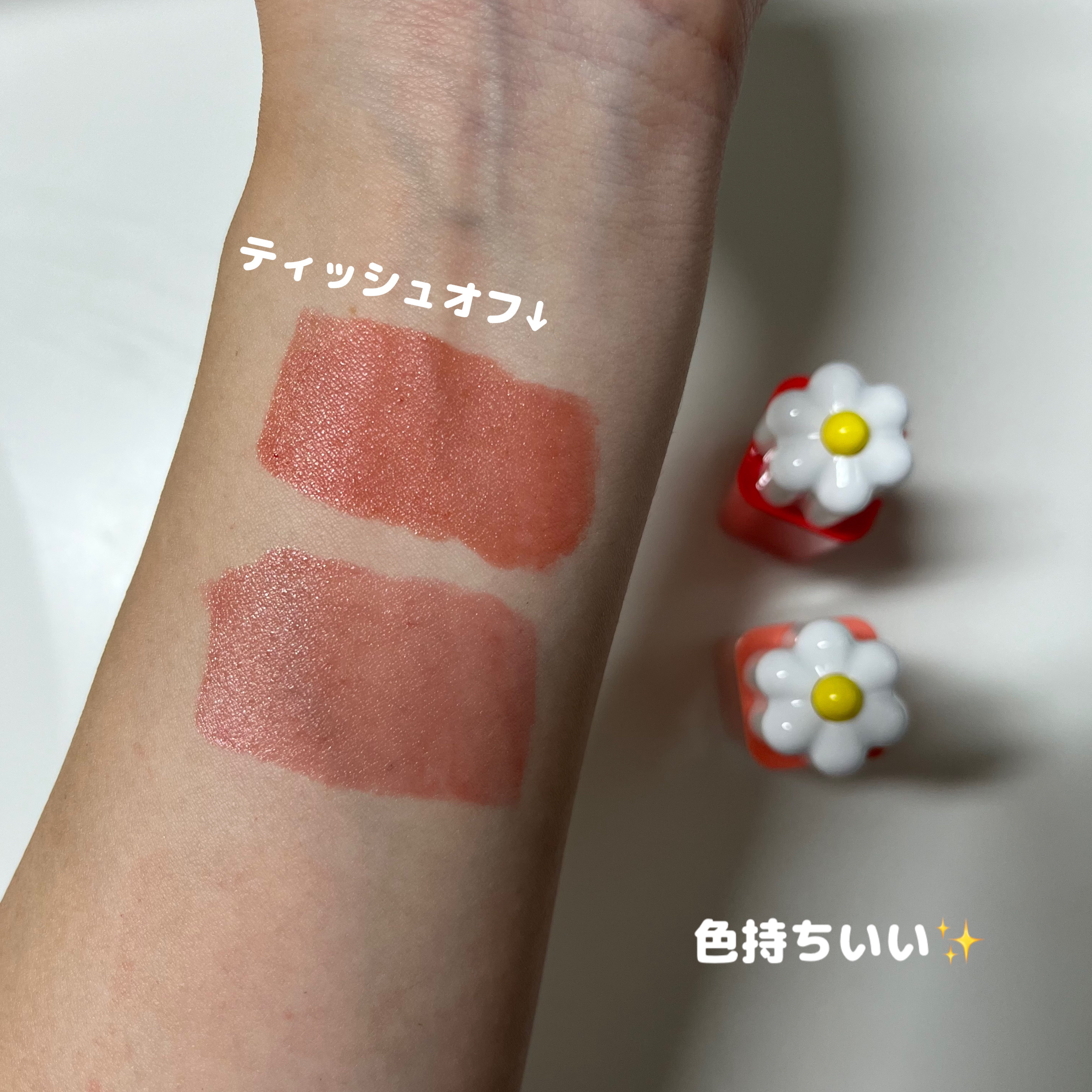 35%高水分のウォーターテクスチャーでベタつきのないロングラスティング透けちゅるリップ💓 東京モモは、血色感を演出するAMUSEのモモカラーに透明感のあるベージュを一滴加えて、柔らかく大人っぽいカラーへ。 なにより、デイジー🌼キャップが可愛すぎね!! 持ってるだけでテンションあがっちゃう。