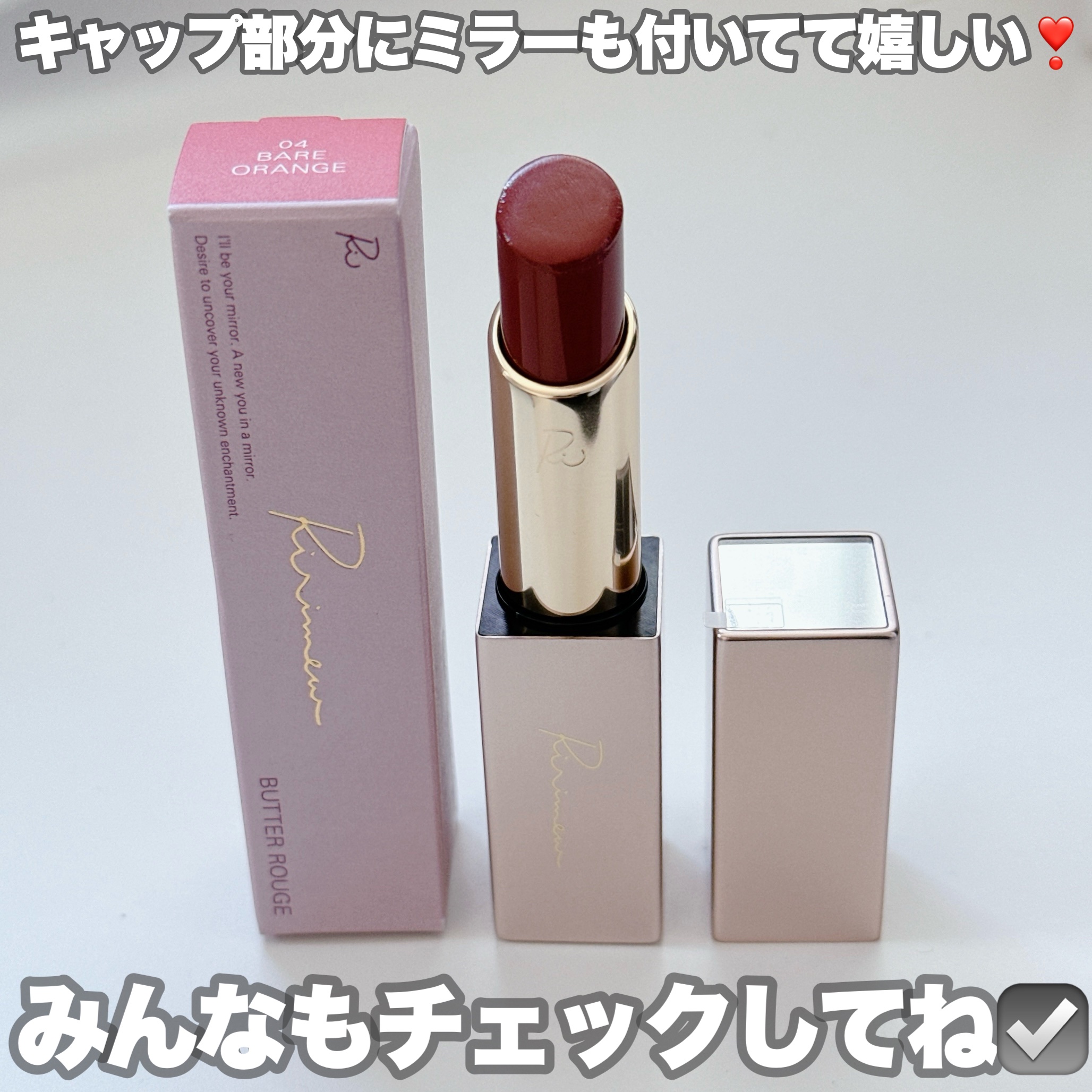 Ririmewリリミュウバタールージュ04ベアオレンジ【唇の温度でとろけてなじむ🩷バタールージュ】とにかくなめらか〜リップバームのような感覚のルージュうるおい感があり色持ちはさほどよくはないけど塗り重ねても汚くならない04ベアオレンジを選んだ...