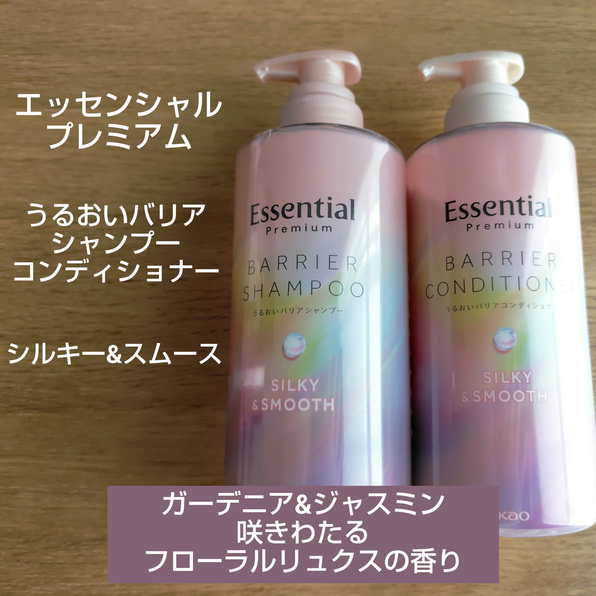 〜エッセンシャルプレミアムシルキー&スムース(ガーデニア&ジャスミン咲きわたるフローラルリュクスの香り)パサつく髪に。とろふわスフレ泡。翌朝するん!うるっとまとまり髪つづく〜✨香りと泡立ちはとてもよかった!✨洗い上がりが少しきしむ感じですがコ...