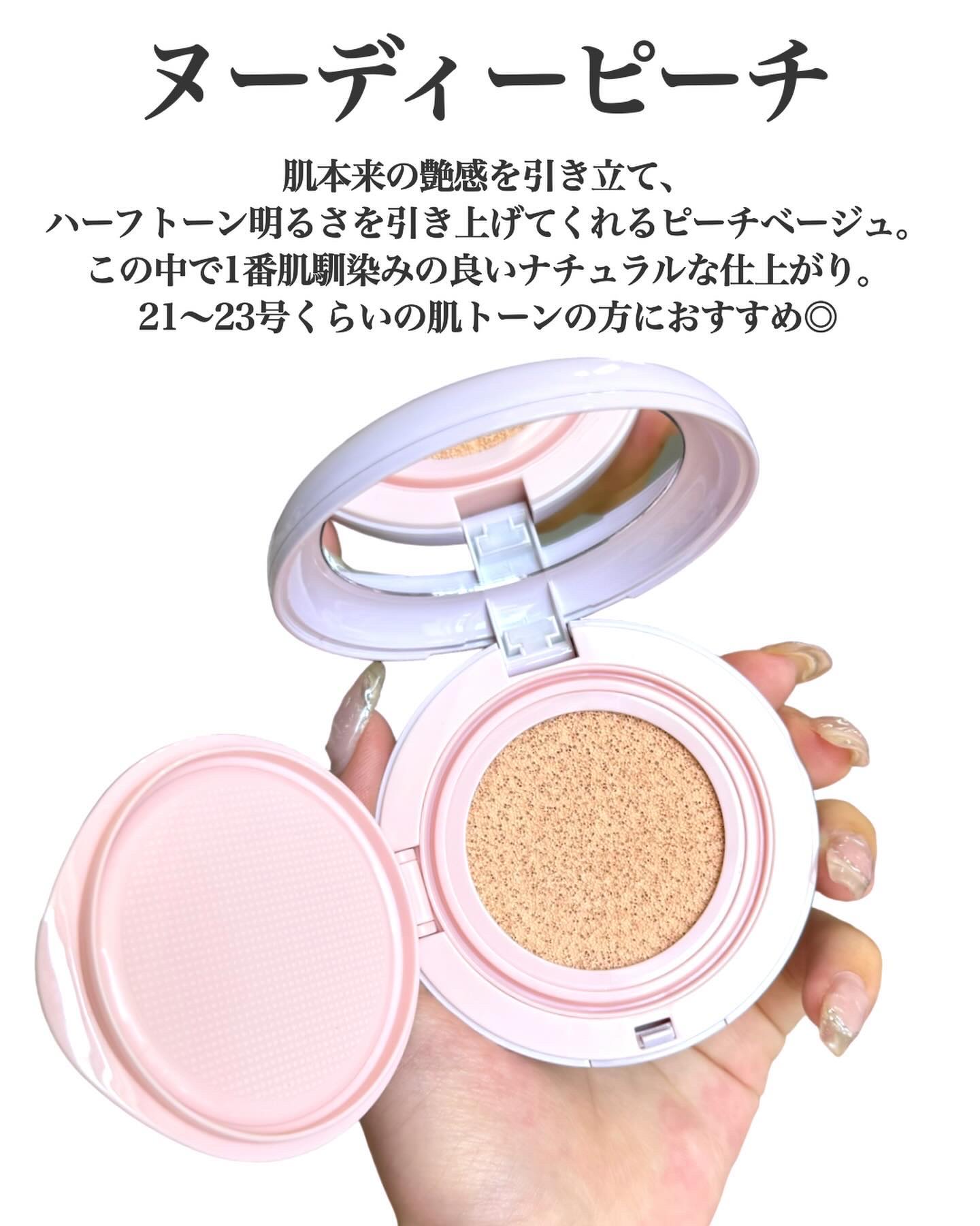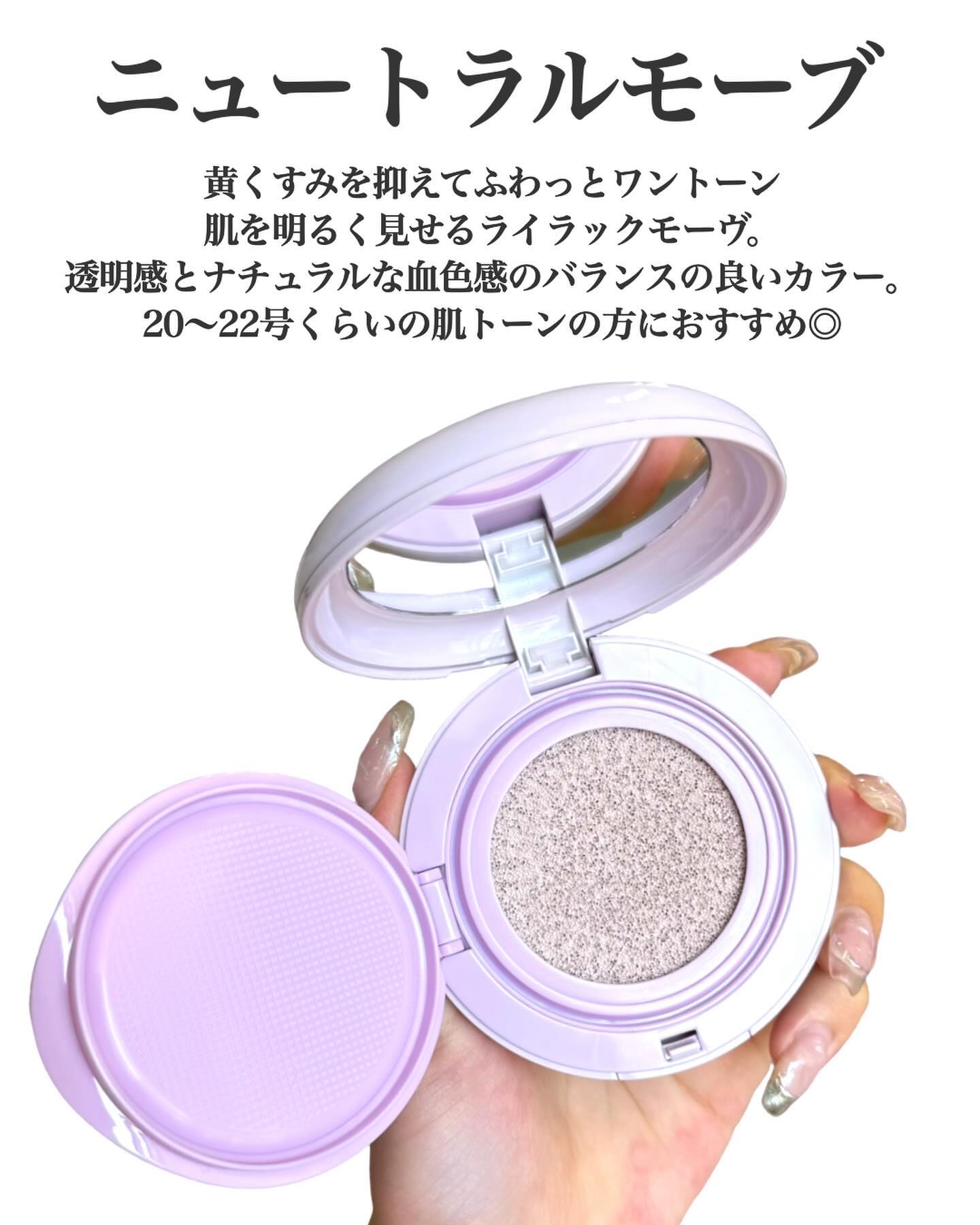 - ゼリーのような弾力のある肌へ導くトーンアップクッション。 SPF50+ PA+++で日焼け止め機能もある万能ベースメイク。 <ヌーディーピーチ> ヌーディーピーチカラーはベージュの色味で、自分の肌のような自然なトーンアップを演出します。 <ニュートラルモーブ> ニュートラルモーブカラーは黄ぐすみカバーをしてくれるので、パッと華やかな印象に。どんな肌の色の方でも綺麗にトーンアップします。 <スノーブルー> スノーブルーカラーはくすみを補正し透明感がアップします。