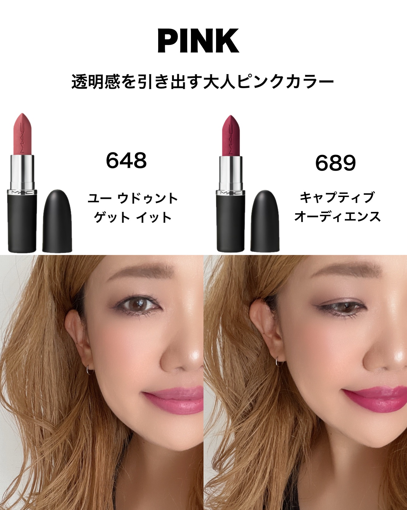 M・A・Cマキシマルスリークサテンリップスティックピンクペパーミントマキシマルシルキーマットリップスティックフラミンゴゲットザヒント?フォーエバーキュリアスウォームテディスウィートディールチリビバハート手持ちの色比較ピンク系はピンクペパーミン...