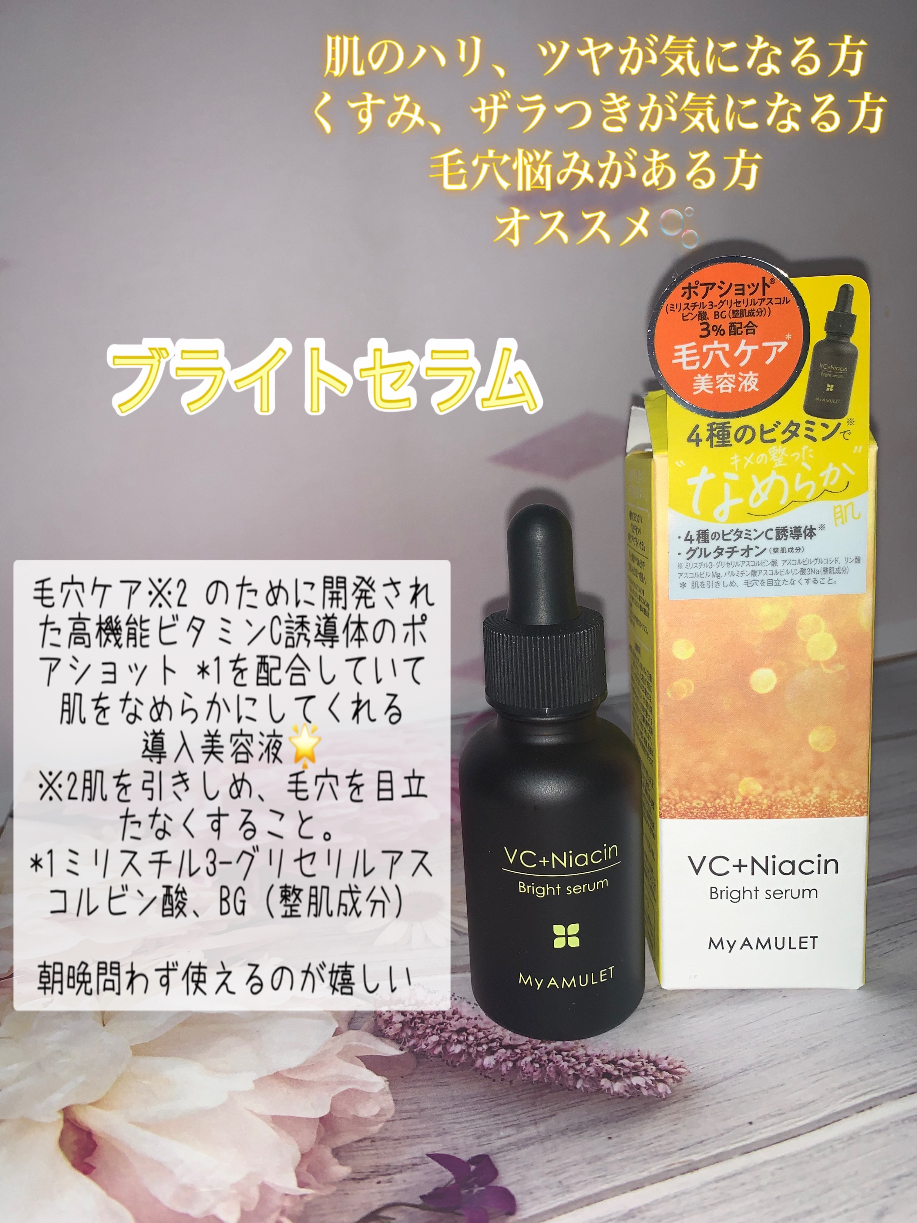 ブライトセラム💛4種のビタミン配合でツヤ肌へ サラッとした質感でクセがない使用感だからいつものスキンケア前にプラスしやすいところがお気に入り◎ レチノールよりもやさしい使い心地でつるんと肌に近付けるピールケアセラム🥚✨