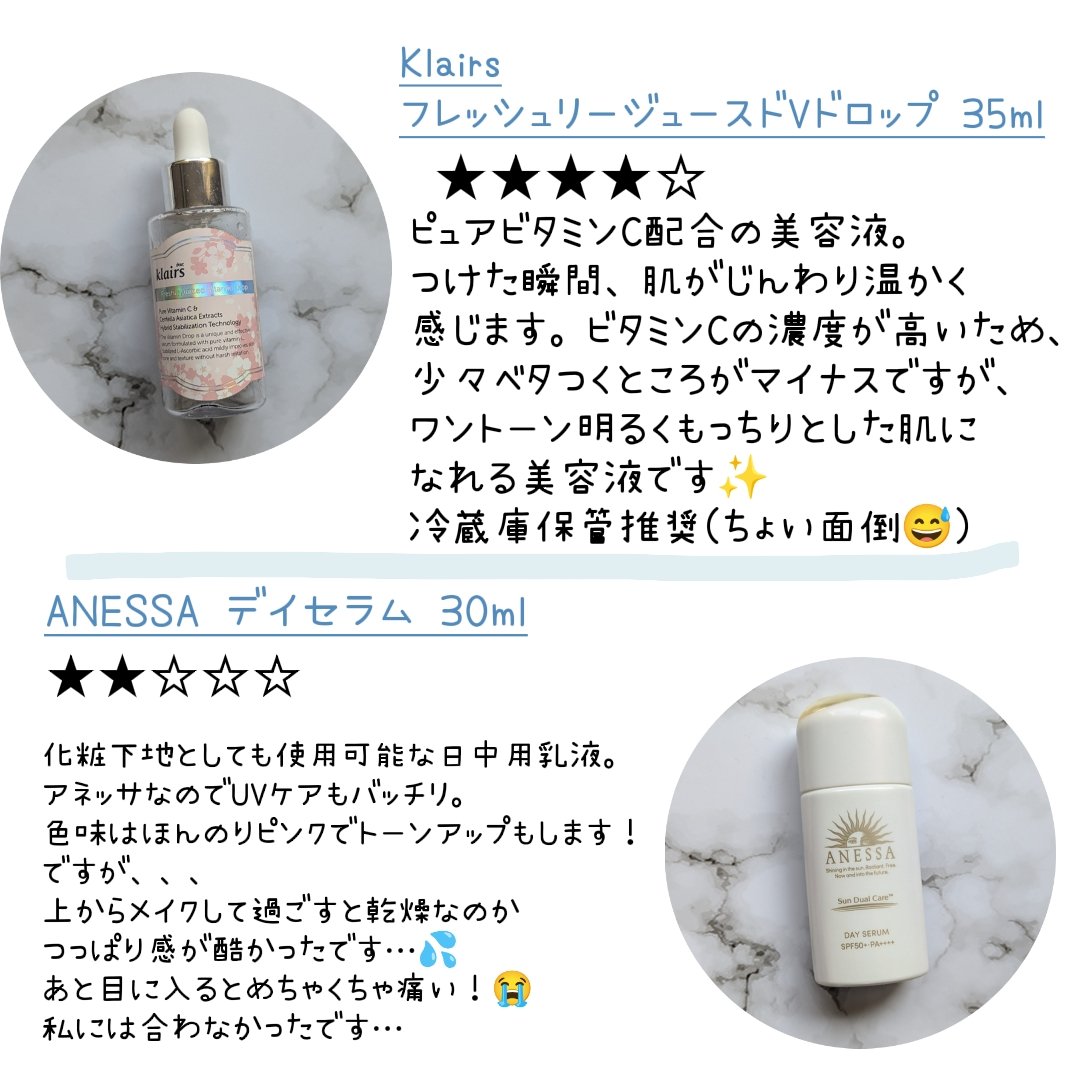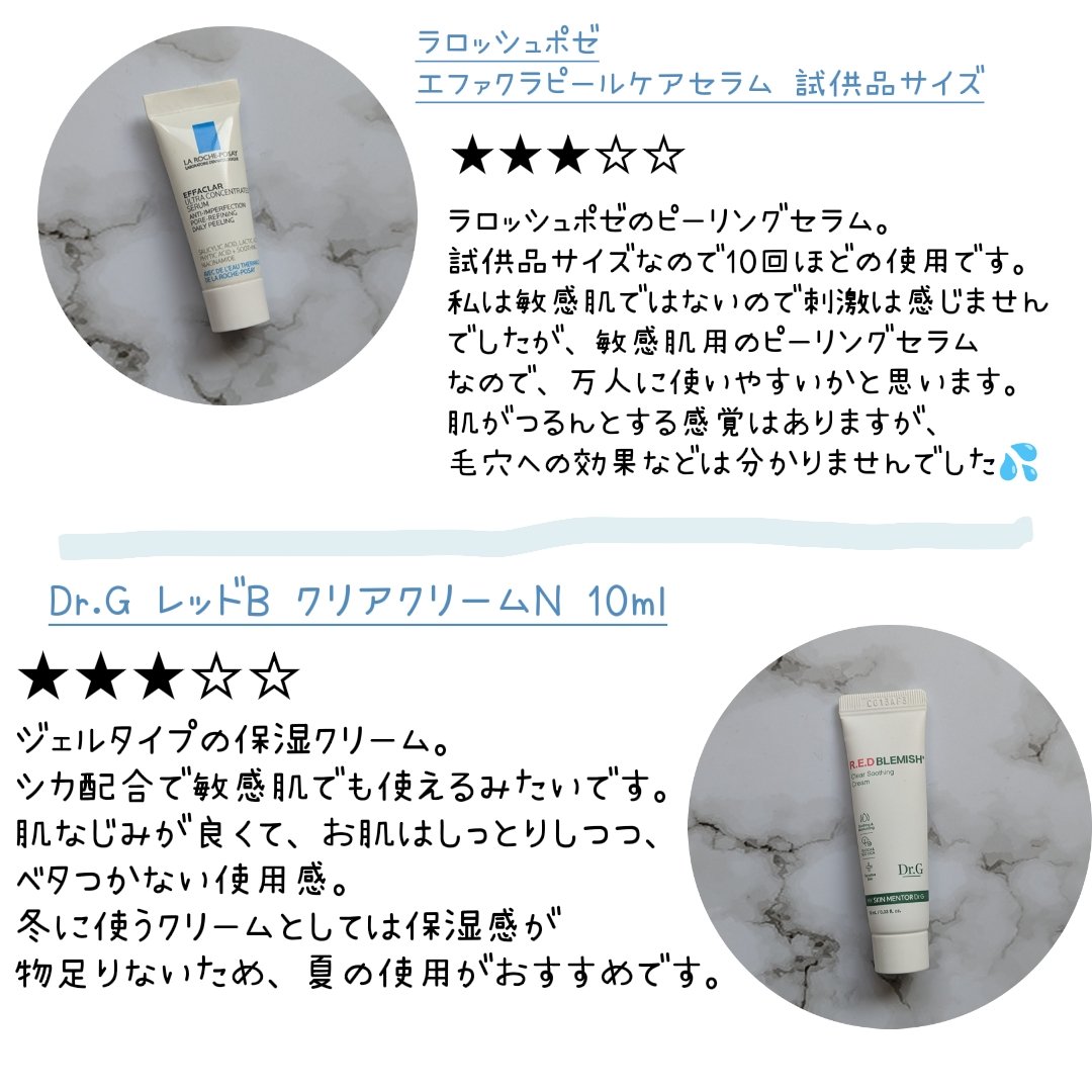 スキンケアは結構シンプル品も多くて、使えた回数としては少ないけれど、肌に合う合わないとか感触、使い心地くらいは分かるのでその辺りをレビュー。 レビューの内容は画像をチェックしてね👆️ #使い切りスキンケア#正直レビュー#&honey#アンドハニー クレンジングオイル #LANEIGE#ウォータースリーピングマスク#ラ ロッシュ ポゼ#エファクラ ピールケア セラム#Dr.G#レッドブレミッシュ クリアスージングクリーム