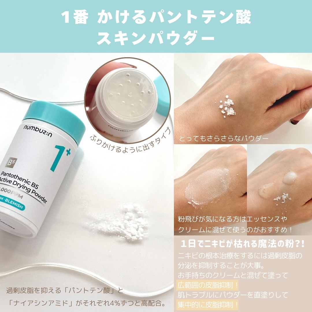 皮脂が多くてニキビできちゃう… ベースメイクが皮脂崩れしやすい… 韓国オリーブヤング𝟏位 𝐐𝟎𝟎𝟏𝟎口コミ𝟒𝟎𝟎𝟎件超え★𝟒.𝟕 ナンバーズインの𝟏番は〝 パントテン酸 〟 根強い皮脂や黒角栓から炎症を起こした肌トラブルまできれいに*🫶🏻
