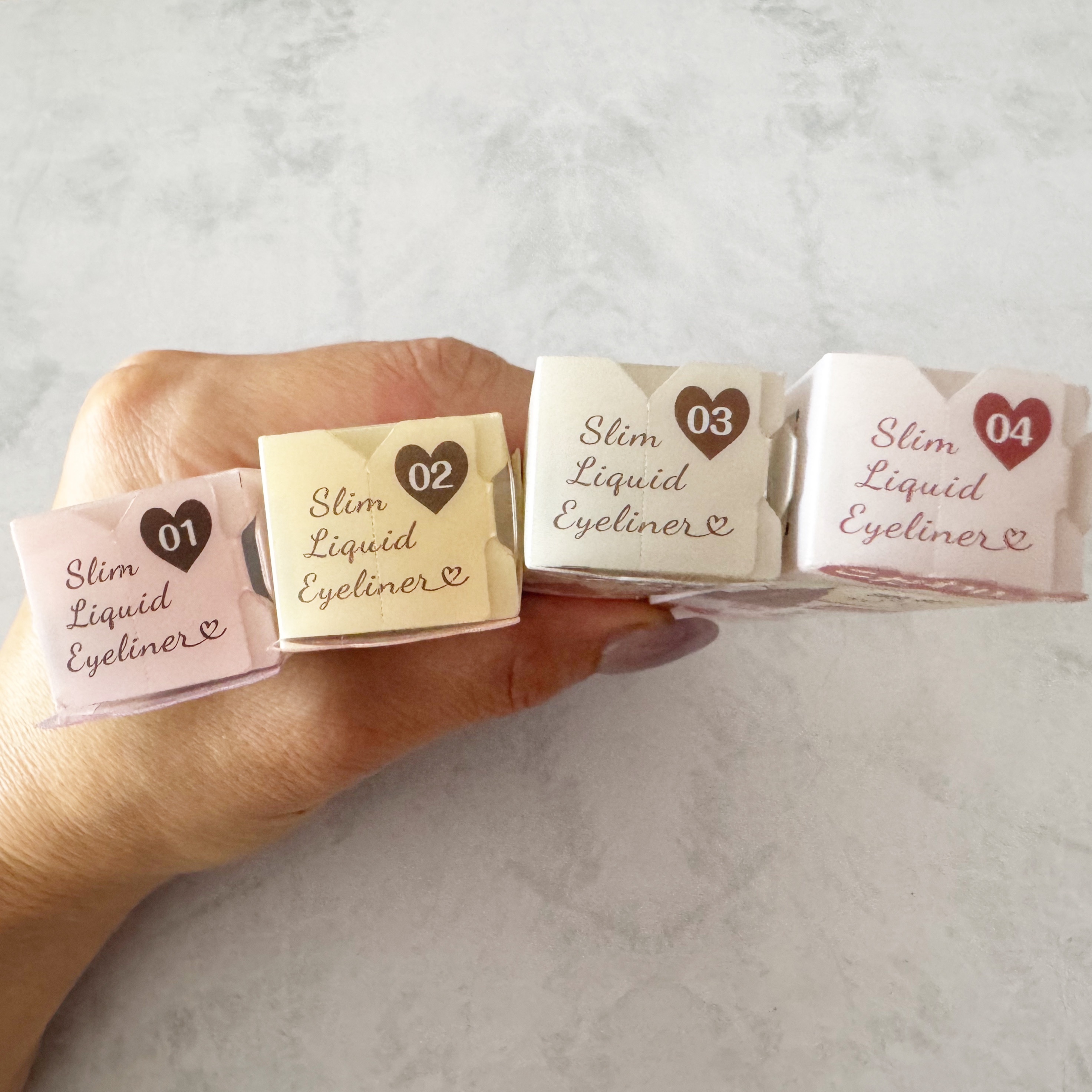 こだわりの短毛・激細筆リキッドアイライナー#スリムリキッドアイライナーに新色&限定色登場♬03☕or04🍓気になるカラーを教えてください💗手ブレしにくく、まつげのキワにも細〜いラインが描きやすい✨アイライナーが苦手な方や初心者さんにもオススメ...