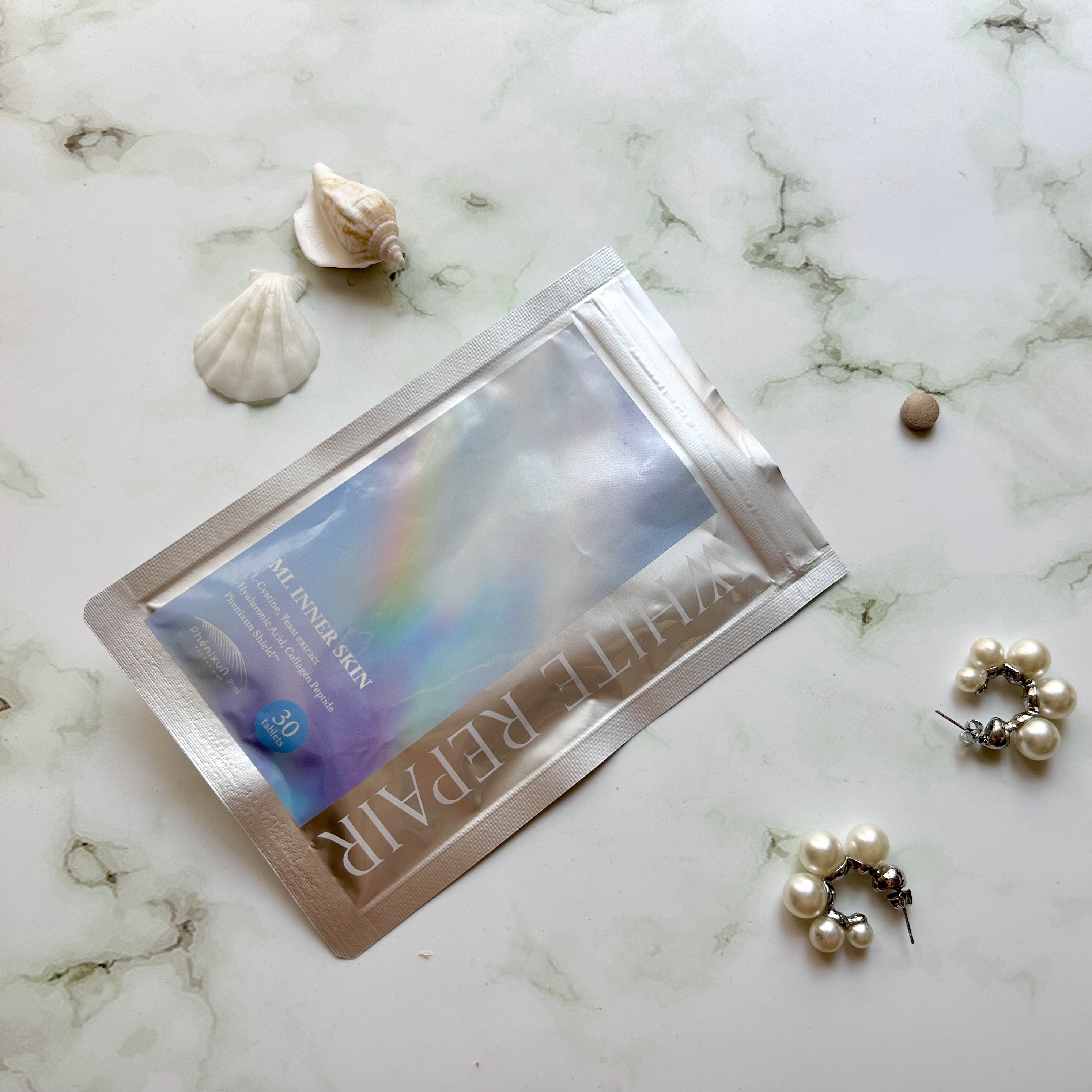 - モイストラボはスキンケア発想のシリーズとして「日中も紫外線を気にせず美しい肌を目指したい」というお客様の声にこたえ、内側からもケアして明るく澄んだ肌を目指し太陽対策ができるビューティケアサプリを発売いたします。 2種類のビタミンCをベストなバランスで配合。ブライト白玉EX成分でくすみのないふっくらと白玉のような肌を目指します。 さらに11種ものビタミンなど美肌に欠かせない成分をたっぷり配合。 そして紫外線に強く水分保持力の高いナツメヤシ由来の新成分を日本で初めて採用することで、紫外線ストレスに負けない強い肌を目指します。 内側から明るく澄みきった毎日をサポートし透明感ある美しさをかなえる美容サプリです。 透明感溢れる澄んだ肌へ ■2種類のビタミンC配合で吸収力UP ■ブライト白玉EX成分配合 ■身体にうれしい美容成分をギュッと濃縮 ■日差しに立ち向かう太陽対策 ■1日1粒飲むだけ!1回1粒で小さく飲みやすいから続けやすい。
