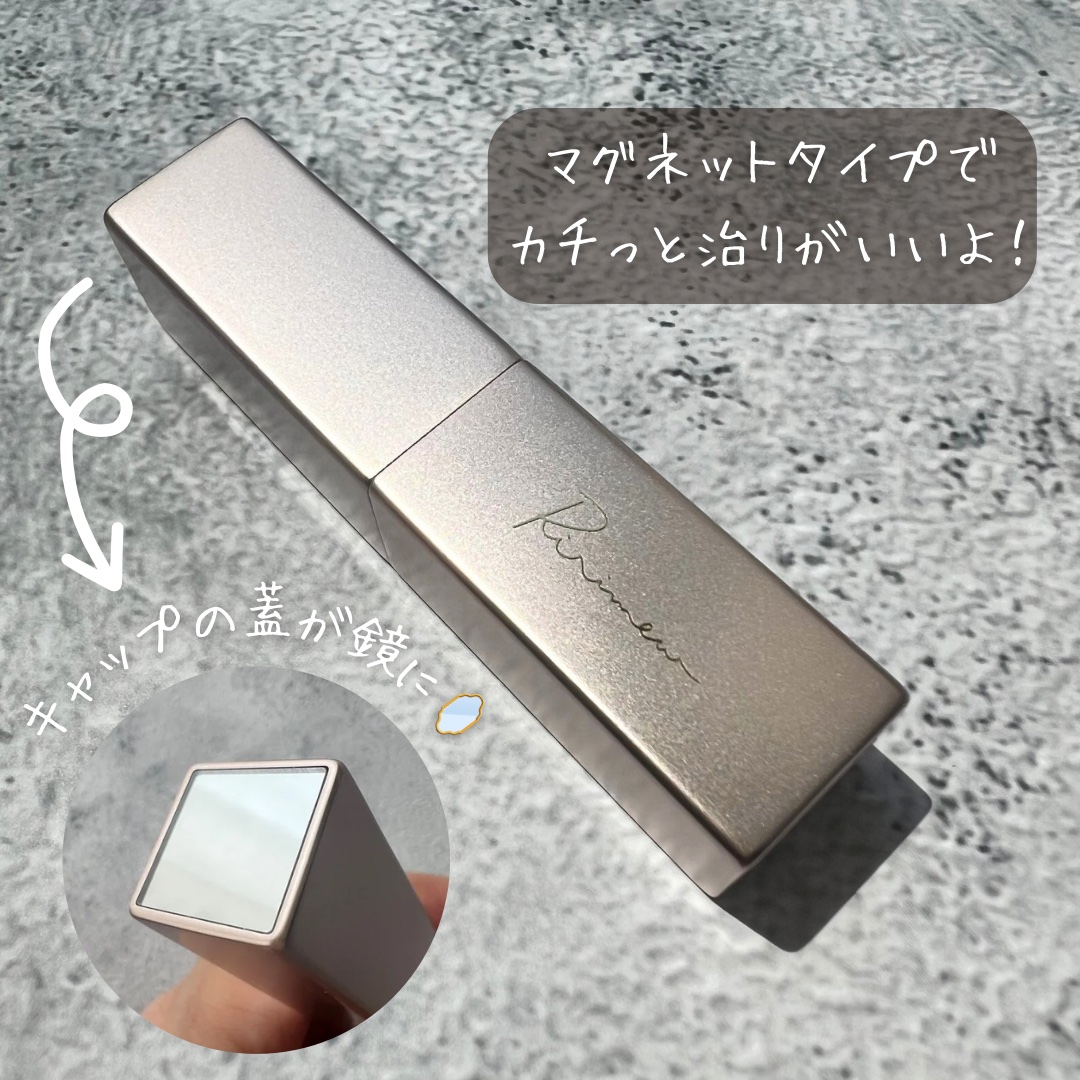 唇の温度で溶けてなじんで、塗りたての色・ツヤが持続するリップ💄 バターのようにとろけるオイルを配合してて、唇にのせるとじゅわっーととろけてするする〜と塗れる✨ キャップに鏡がついてるのとか、マグネットタイプでカチっと治りがいいのとか細かいとこまでこだわっててさすがさっしーと思った🫶