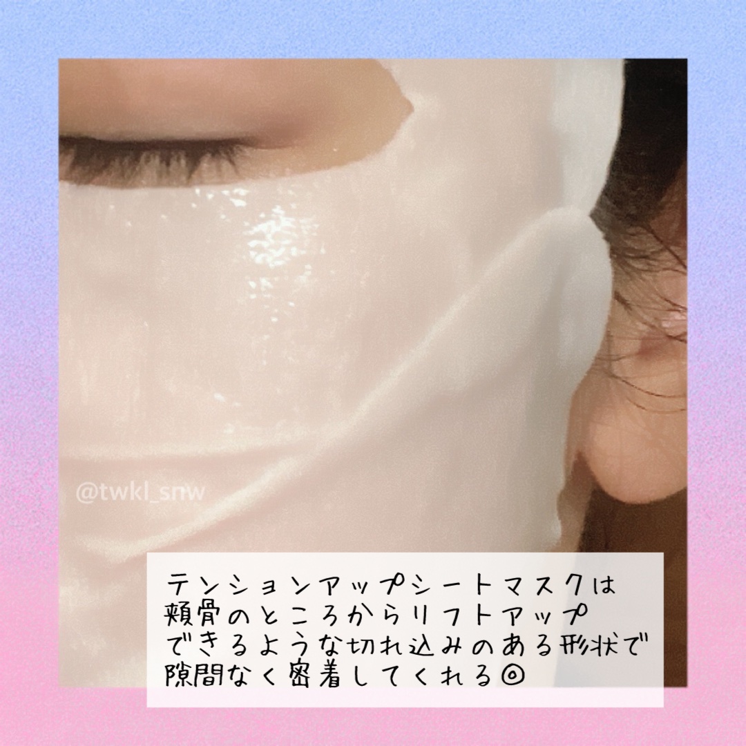 イタリア産ホワイトトリュフとコラーゲンエキスを含む濃縮セラムが肌に豊かな栄養と保湿を与え、肌をなめらかに整えてツヤのある肌に導いてくれるシートマスクだよ✨ 密着するテンションアップシートマスクの厚みも程よいね🎵引き上げるように貼るとしっかり密着するよ‼️この引き上がる感じが気持ちいいのよね💓 イタリア産ホワイトトリュフが肌に水分を供給し肌を整えて、ざらついて乾燥の気になる肌をなめらかでツヤのある肌に導いてくれるマスクだよ✨