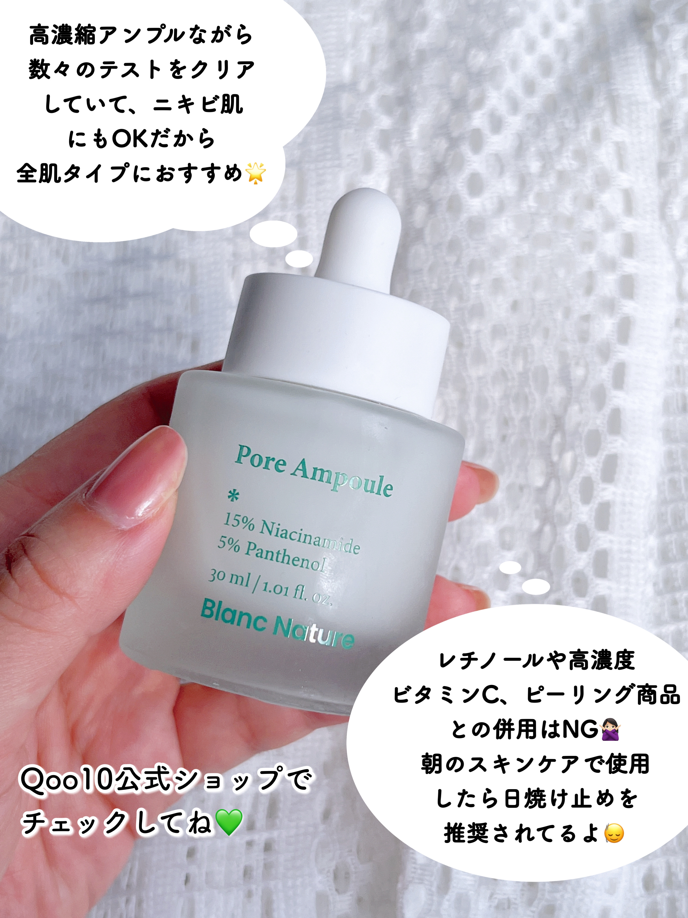 韓国のニキビ専用スキンケアブランド、BLANC(ブラン)から誕生した毛穴消しゴムアンプルを使ってみました✨ 毛穴収縮や毛穴黒ずみケア、色素沈着ケアに効果的! ナイアシンアミドが15%高濃縮配合・テカリや皮脂をさっぱりコントロールするパンテノール高配合