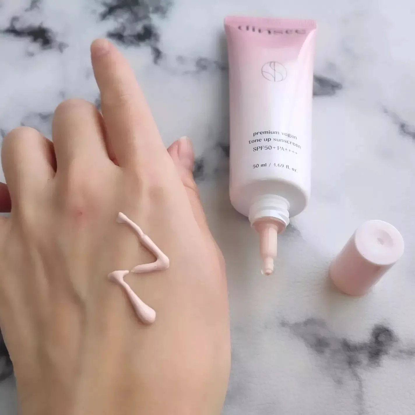 dinseeプレミアムビーガントーンアップ日焼け止めSPF50+/PA++++50ml2900円(税込)Qoo10限定🩷dinsee×BELLYGOMコラボ🫶🏻SPF50+/PA++++の紫外線吸収剤、散乱剤の混合型で紫外線を二重にブロックし...