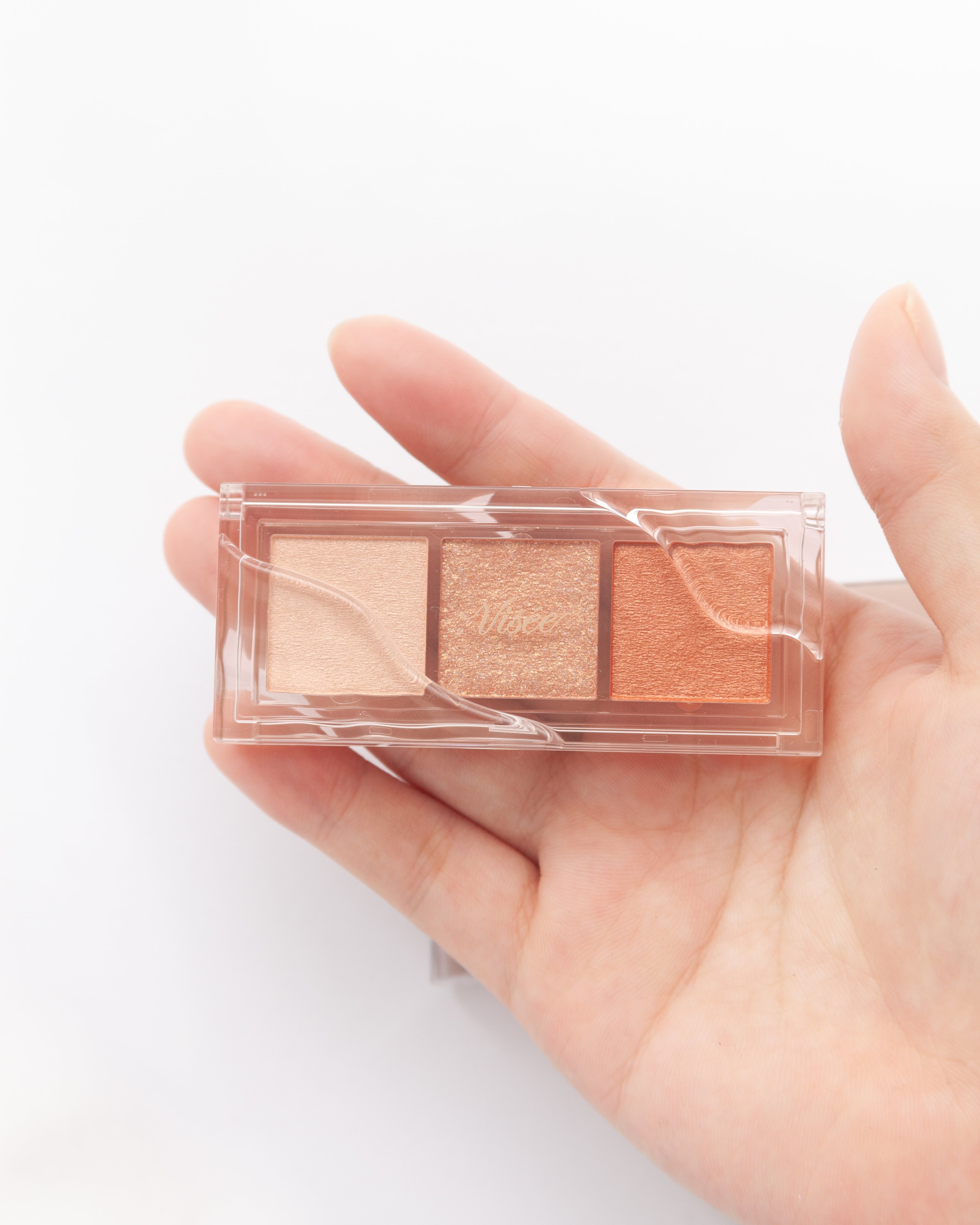 高輝度偏光パール×大粒グリッターを贅沢に配合した3色セットのアイカラー。角度によって色と輝きが変化する偏光パールが目元に魅力的な輝きを与えます! グリッターカラーがすごく可愛くてまぶた全体に塗ってもギラギラし過ぎない💫 パッケージはコンパクトでスリムなデザインでふた部分も水面のような立体感があり美しい💗