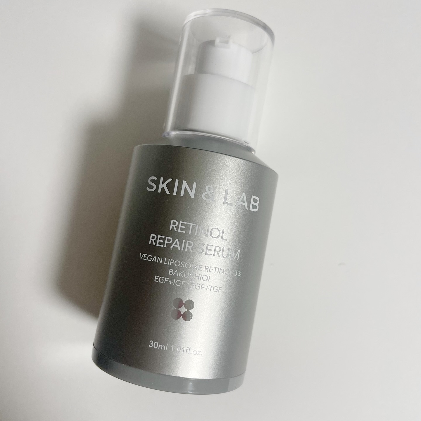 純度99%のグルタチオンと10種のビタミンが配合された化粧水なんだけど、保湿だけじゃなくてくすみケアや抗酸化作用なんかも期待できる成分が入ってるから、もはや美容液なのでは?というレベル。 低刺激なのに高品質なレチノール美容液。光や熱などに弱いレチノールを保護するためのエアレスボトルが頼もしい。 使いやすくて気に入ってます✌🏻