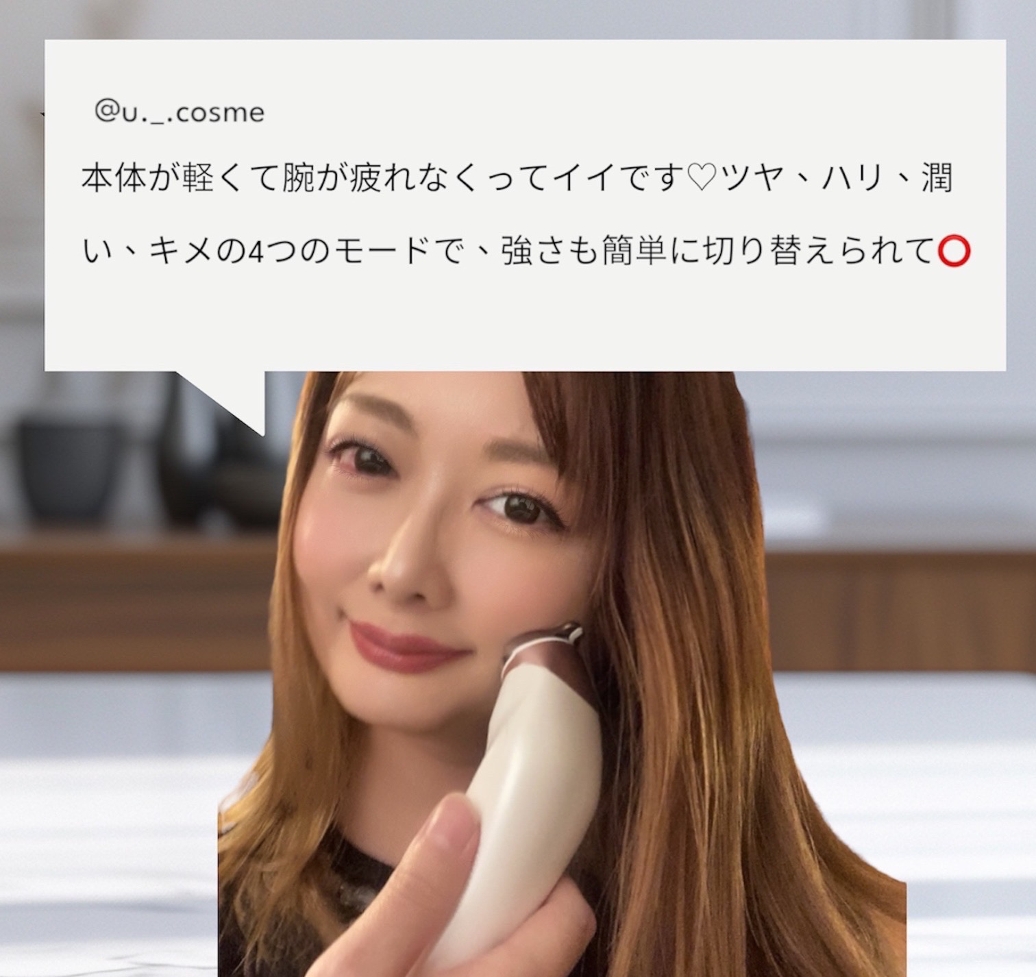 4つのモードから(3段階の強弱) その日にあったケアができる美顔器💁🏻♀️💗 やっぱりスキンケアの浸透力が変わるから? 肌の奥へ奥へ成分が届くから?? ベースメイクがめっちゃ綺麗に見える🫣💓 乾燥肌だから、 浸透効果が分かりやすいのもある❤️🔥✊🏻 お肌つやもち子さん👶🏻笑 ・とにかく軽い!! ・生活防水機能付き ・充電式のコードレス🔌