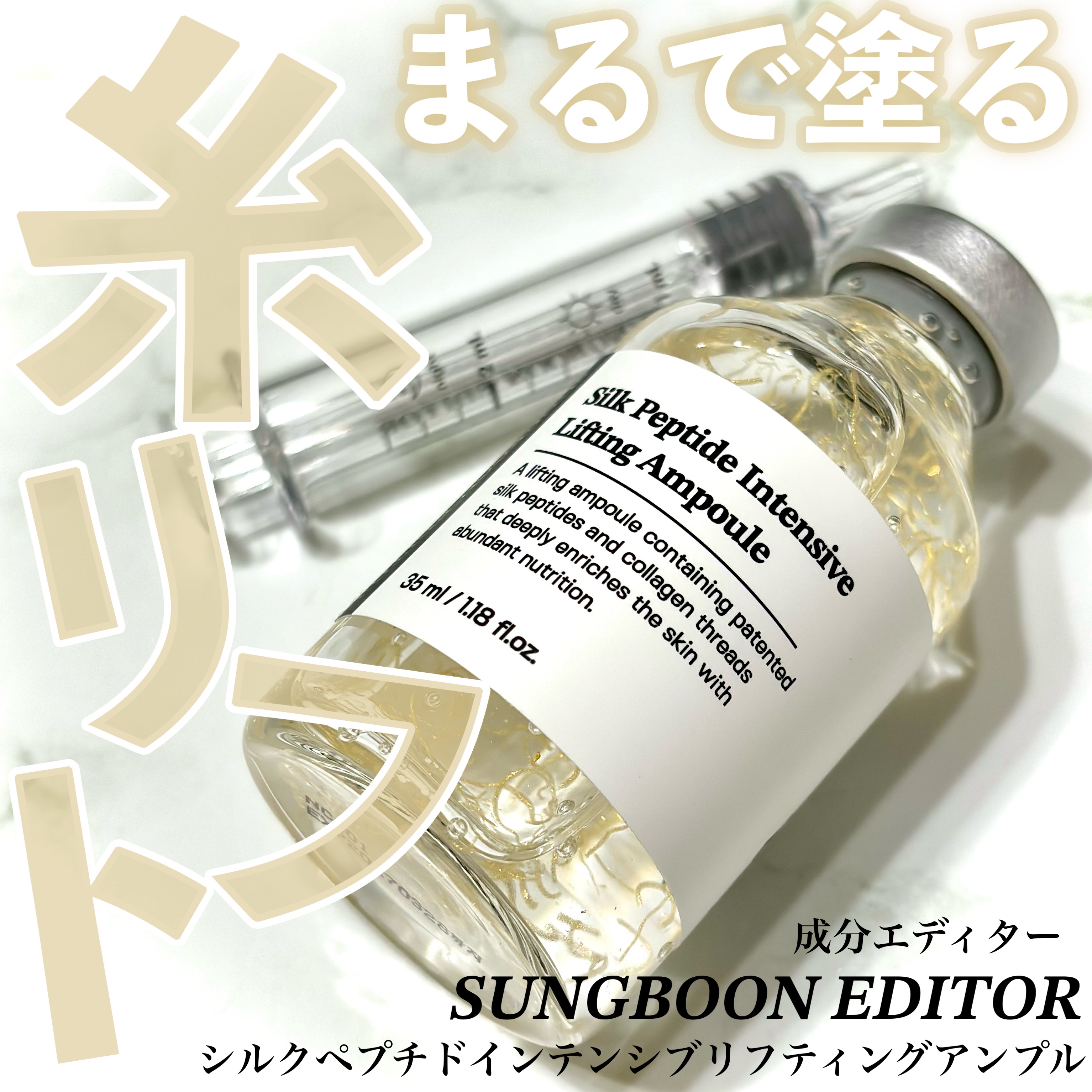 SUNGBOONEDITOR成分エディターシルクペプチドインテンシブリフティングアンプル¥4,500見た目がインパクト大な成分エディターのシルクペプチドインテンシブリフティングアンプル❕コラーゲンでできた金色の糸でうるおいあるお肌に🫧とろみあ...