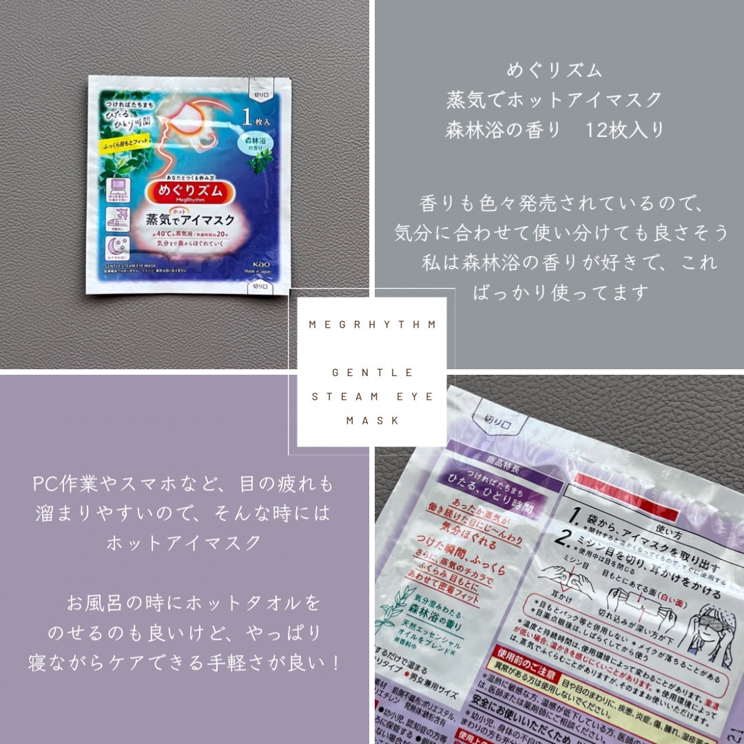 蒸気で温めてくれるめぐリズム✨ 普段疲れを癒したい時には勿論、LIVEや旅行等イベント時にも愛用中。 ふんわり肌あたりのやさしい着用感とじんわりとした温かさでほぐれる~! 蒸しタオルを当てているような心地よさが約30分も持続してくれて嬉しい〜