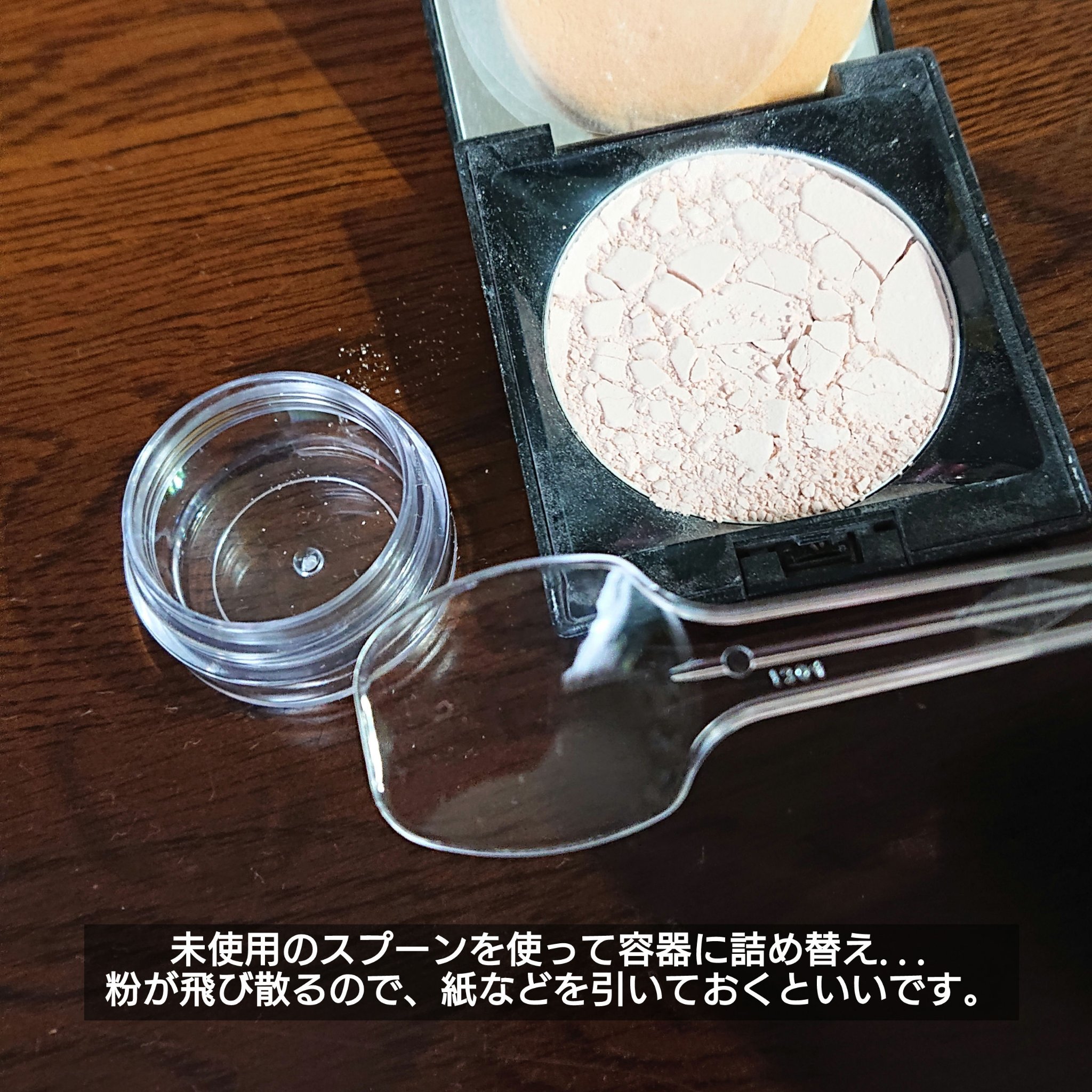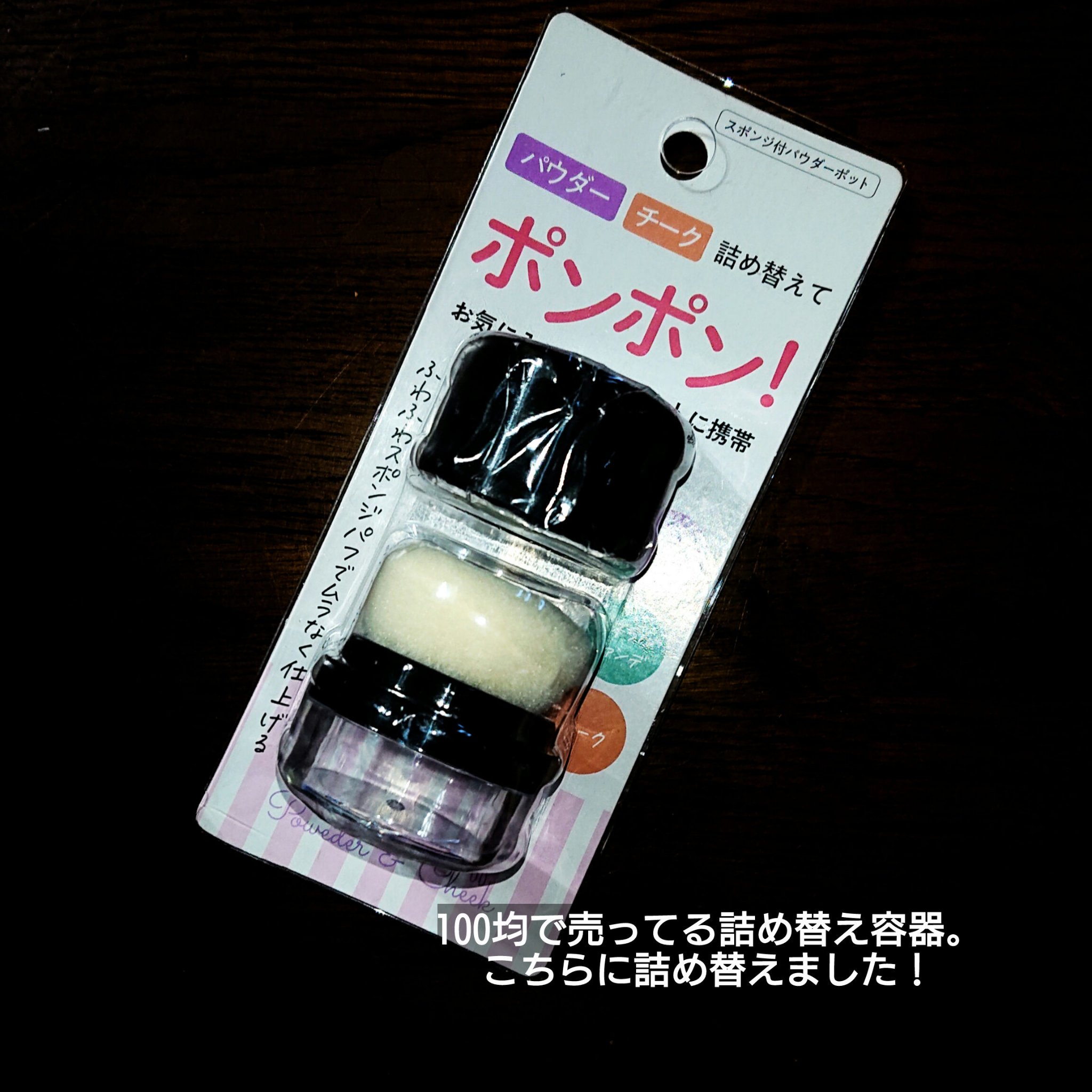 いらない粉チークを砕いで混ぜてオリジナルチークができちゃう便利グッズ 面白いので購入しましたが、リピ無しかなあというかんじです。 まず砕いで入れてもなかなか出てこない。針でスポンジをグサグサ刺して少し穴を開けて使うのがおすすめです。 ただ、これめっちゃ叩いて色載せてて、顔に使うには衝撃が気になります、、、
