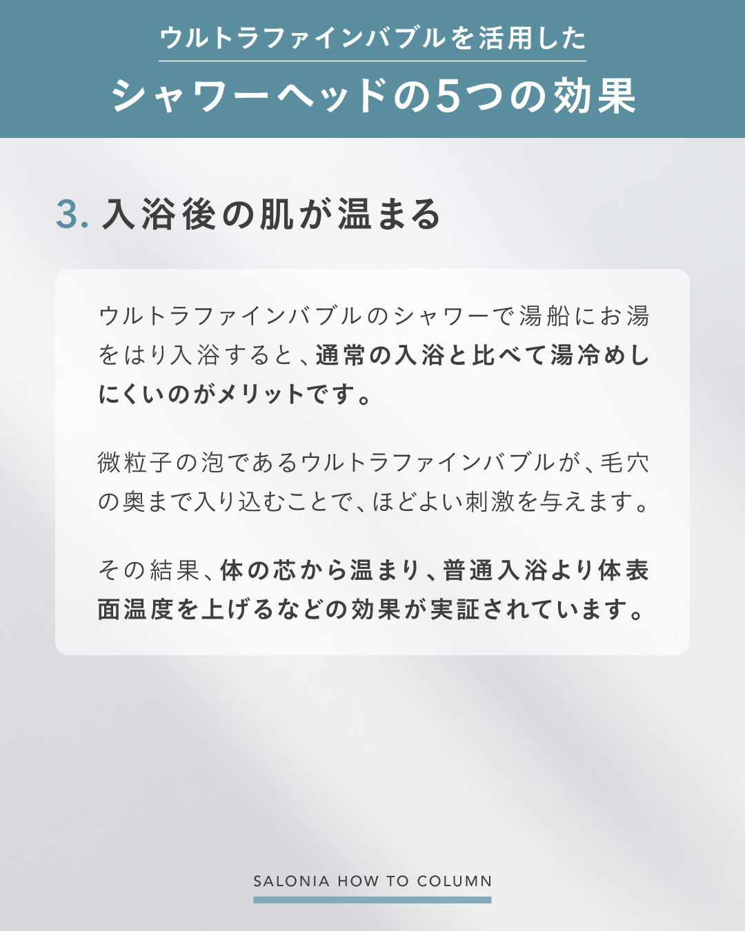ウルトラファインバブルとは目に見えないほど小さく毛穴の約1/300の大きさの超極小泡のこと。そんな泡が温かい霧状のミストで出てくるミストモード搭載。 透き通る素肌を目指せる&健やかでクリアな頭皮、美髪も目指せる!!!!さらにうるおい、肌表面温度もUPするんだとか✨ まるで浴びる美容液みたい!スペシャルケアには重炭酸タブレットがオススメ!美容成分を含んだ重炭酸シャワーイオンって凄すぎません?