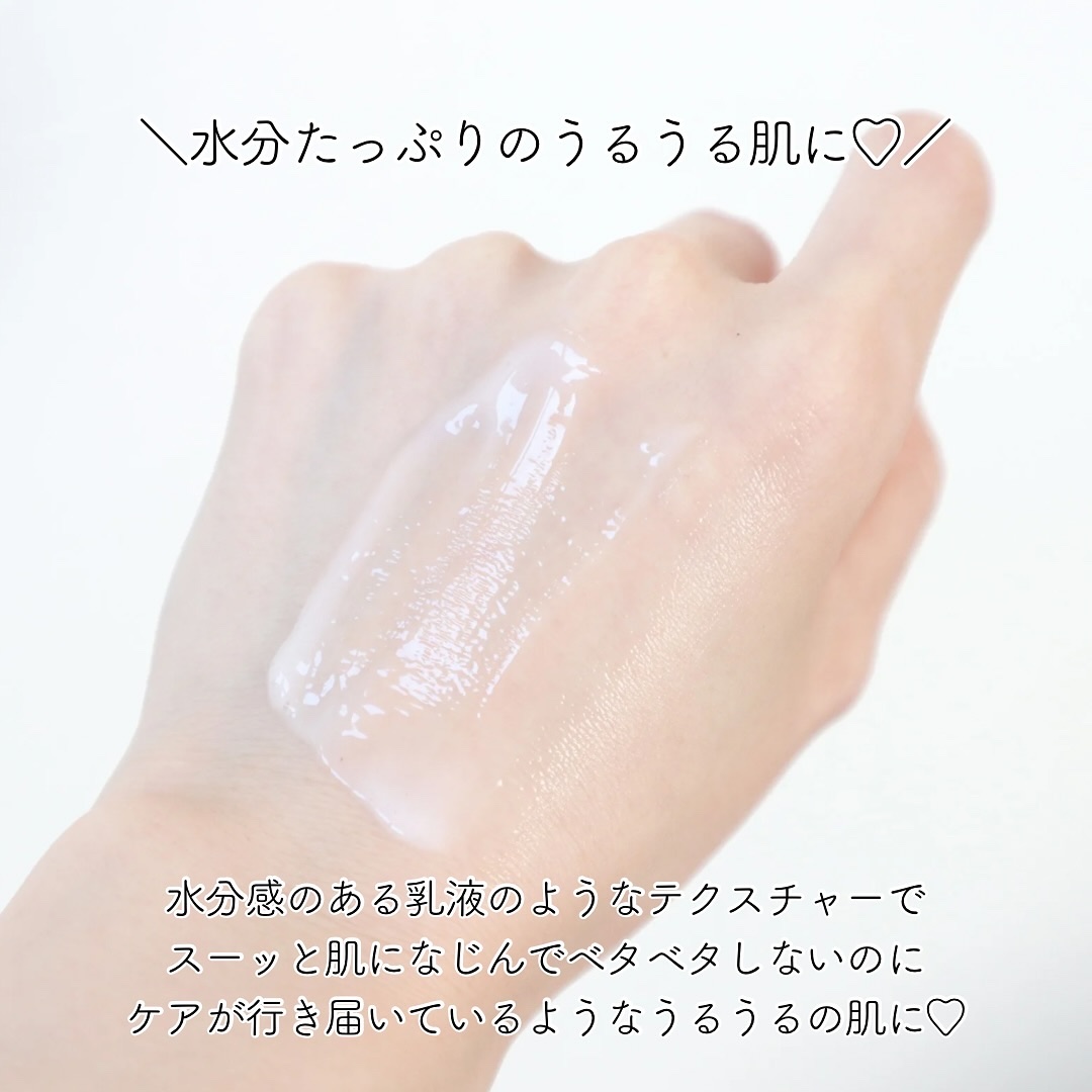 | テクスチャーは乳液のような水分たっぷり✨ 伸びが良くすーっと馴染み ベタつきがなくしっとりするので 軽い使い心地で使いやすいです🙌 | 詳細を見る | |