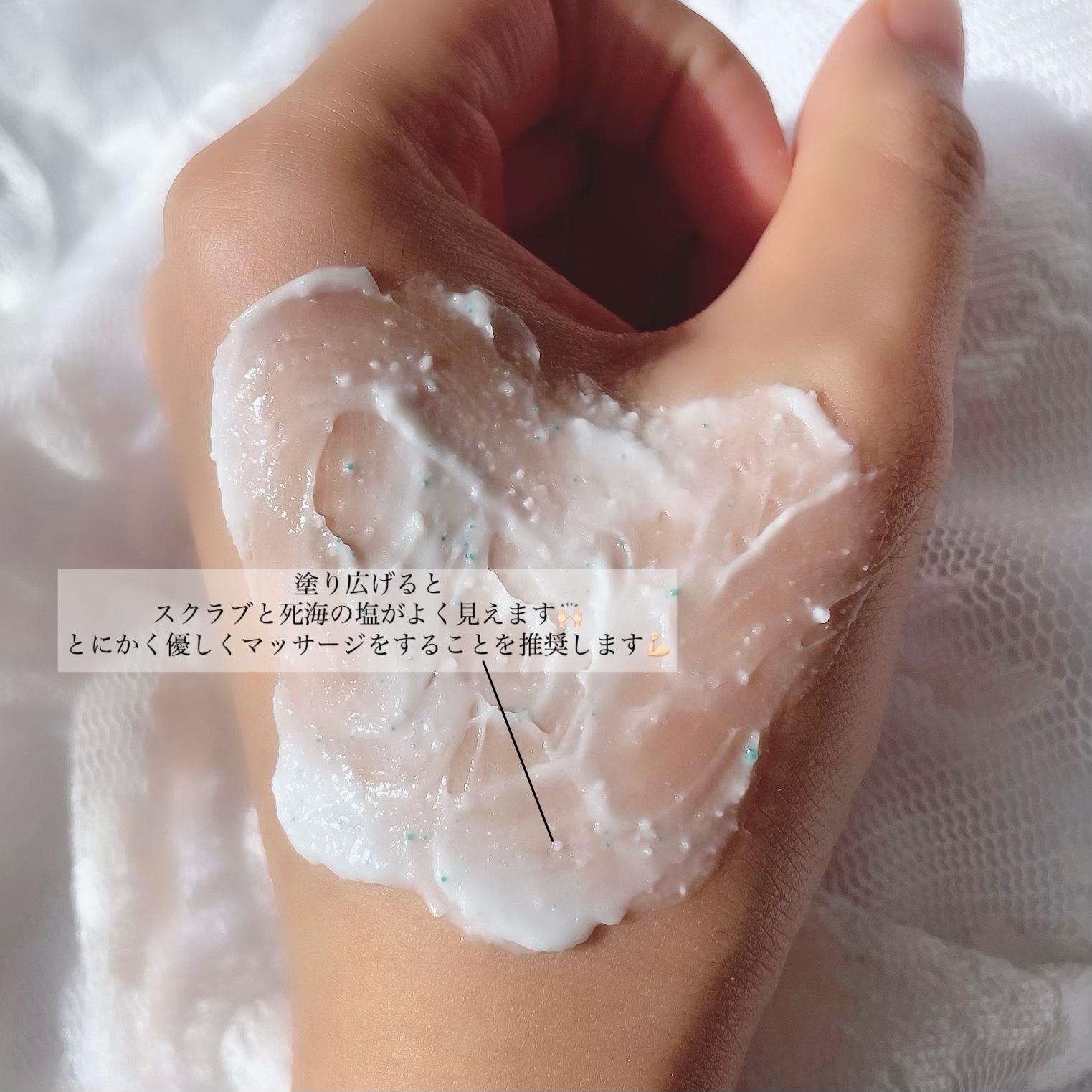 - 毛穴レスの柔肌を1品で叶える、2in1スクラブ洗顔 洗顔と角質ケアを同時に叶えるフェイス用スクラブ。ホホバ由来のスクラブ粒子*で古い角質や毛穴の汚れを取り除き、死海のミネラル**とジェリコローズ***がお肌に潤いを与えます。水分と油分のバランスを整えながら、なめらかな素肌に磨き上げます。清涼感のあるミントの香りで、すっきりしたい朝の肌におすすめです。 *ステアリン酸ステアリル、キャンデリラロウ、ホホバエステル(洗浄補助)**海塩(整肌)***アンザンジュエキス(保湿)