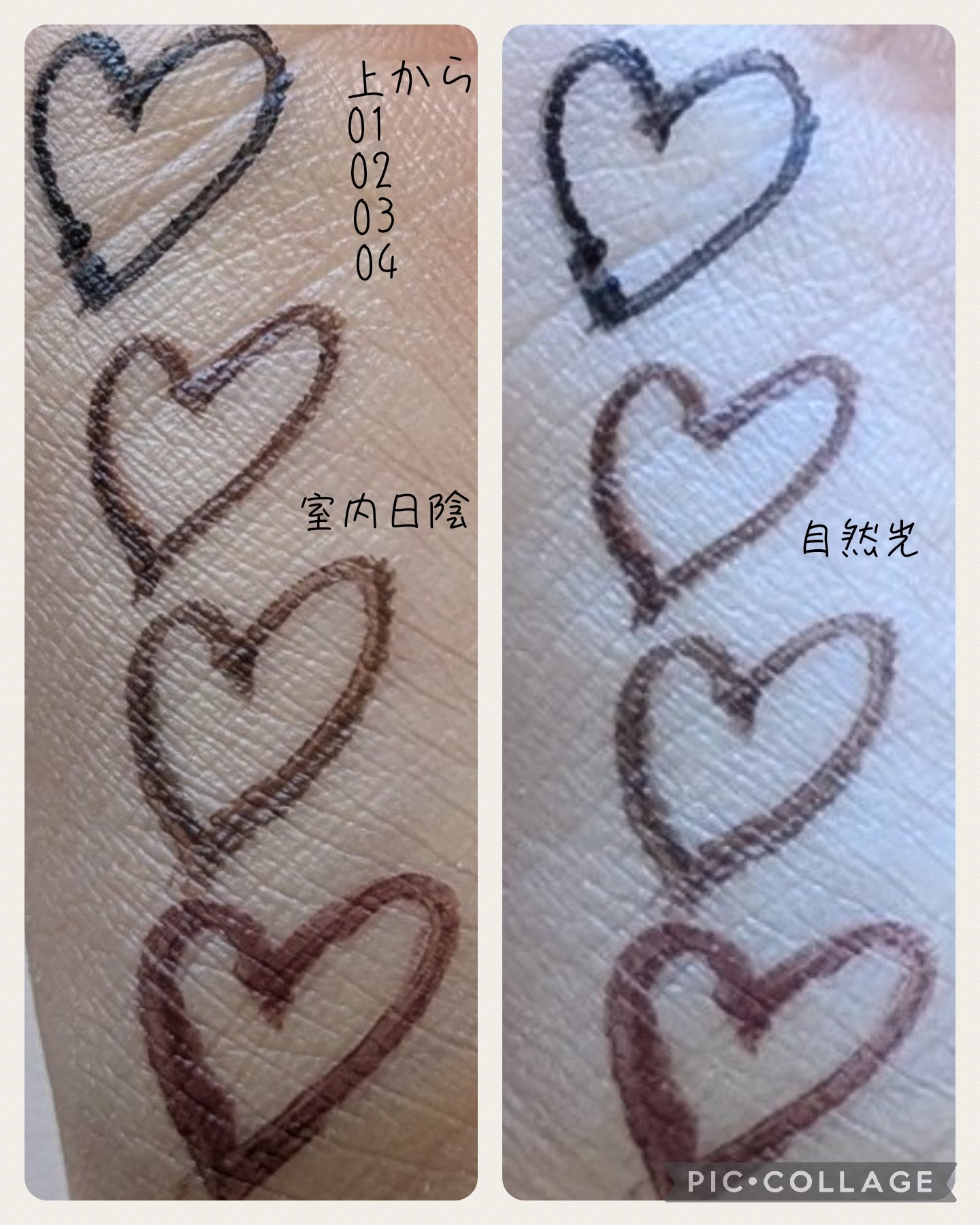 - <01 ブラック> 水、アクリレーツコポリマー、BG、1,2-ヘキサンジオール、(アクリレーツ/オクチルアクリルアミド)コポリマー、フェノキシエタノール、TEA、メチルパラベン、エチルヘキシルグリセリン、エチルパラベン、カミツレ花エキス、サトザクラ花エキス、アスコルビン酸、リンゴ酸、チャ葉エキス、カーボンブラック <02 ブラウン> 水、BG、アクリレーツコポリマー、ポリアスパラギン酸Na、フェノキシエタノール、セテス-20、エチルヘキシルグリセリン、メチルパラベン、水酸化Al、エチルパラベン、EDTA-2Na、クエン酸、デヒドロ酢酸Na、カミツレ花エキス、サトザクラ花エキス、アスコルビン酸、リンゴ酸、チャ葉エキス、酸化鉄 <03 チャバグレージュ> 水、BG、(アクリル酸エチルヘキシル/メタクリル酸メチル)コポリマー、ポリアスパラギン酸Na、(アクリレーツ/メチルスチレン/スチレン)コポリマーアンモニウム、1,2-ヘキサンジオール、フェノキシエタノール、ベヘネス-30、メチルパラベン、エチルパラベン、セテス-20、EDTA-2Na、クエン酸、デヒドロ酢酸Na、カミツレ花エキス、サトザクラ花エキス、アスコルビン酸、リンゴ酸、チャ葉エキス、エチルヘキシルグリセリン、酸化チタン、酸化鉄、カーボンブラック、水酸化Al <04 スモーキーベリー> 水、BG、(アクリル酸エチルヘキシル/メタクリル酸メチル)コポリマー、1,2-ヘキサンジオール、ポリアスパラギン酸Na、(アクリレーツ/メチルスチレン/スチレン)コポリマーアンモニウム、フェノキシエタノール、セテス-20、メチルパラベン、エチルパラベン、ベヘネス-30、AMP、EDTA-2Na、デヒドロ酢酸Na、カミツレ花エキス、サトザクラ花エキス、アスコルビン酸、リンゴ酸、チャ葉エキス、エチルヘキシルグリセリン、酸化チタン、酸化鉄、赤226、カーボンブラック、水酸化Al