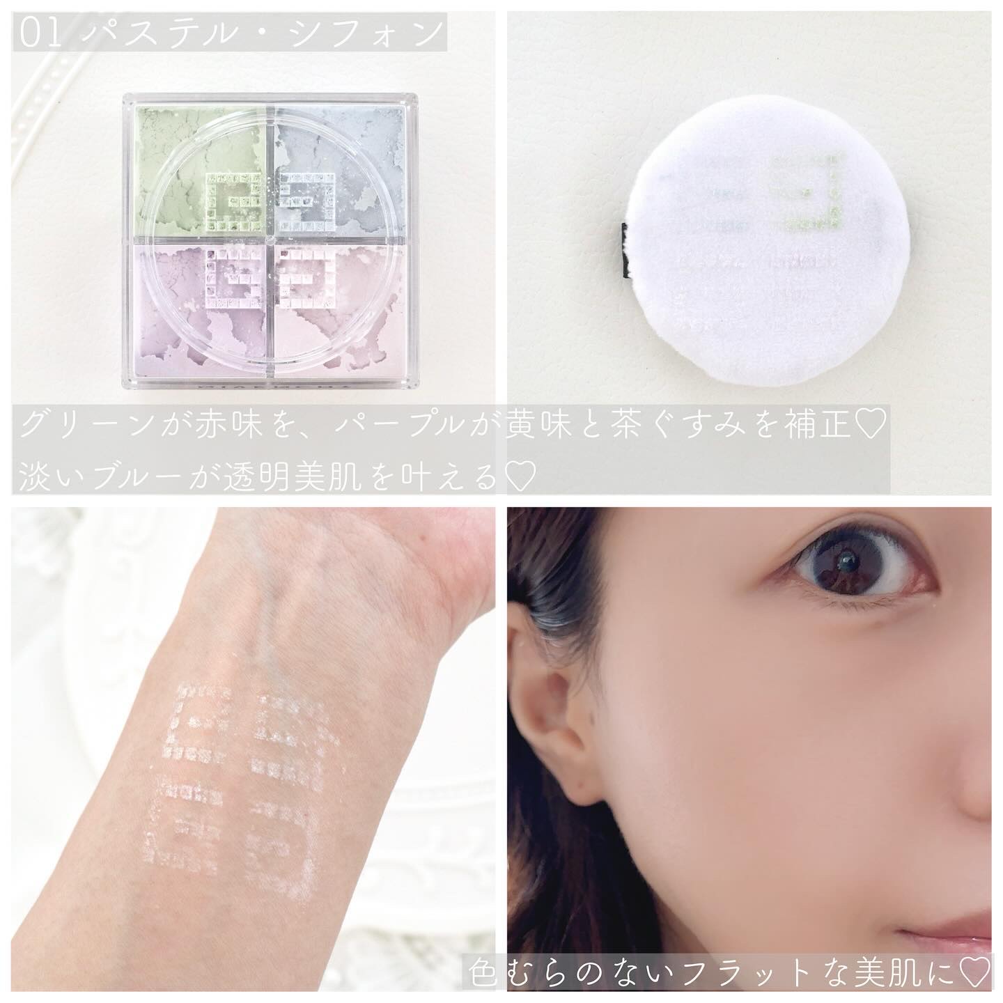 肌に輝きや透明感が出る魔法のお粉❣️ 使用感はとてもいいし、パッケージも素敵✨ 新色のNo.00オパルセント・チュールがとにかくナチュラルに肌キレイに見える⭐️ わたしにとってもベスコスです❣️ 🎀GIVENCHY🎀 プリズム・リーブル No.00オパルセント・チュール No.01パステル・シフォン 各¥8,250