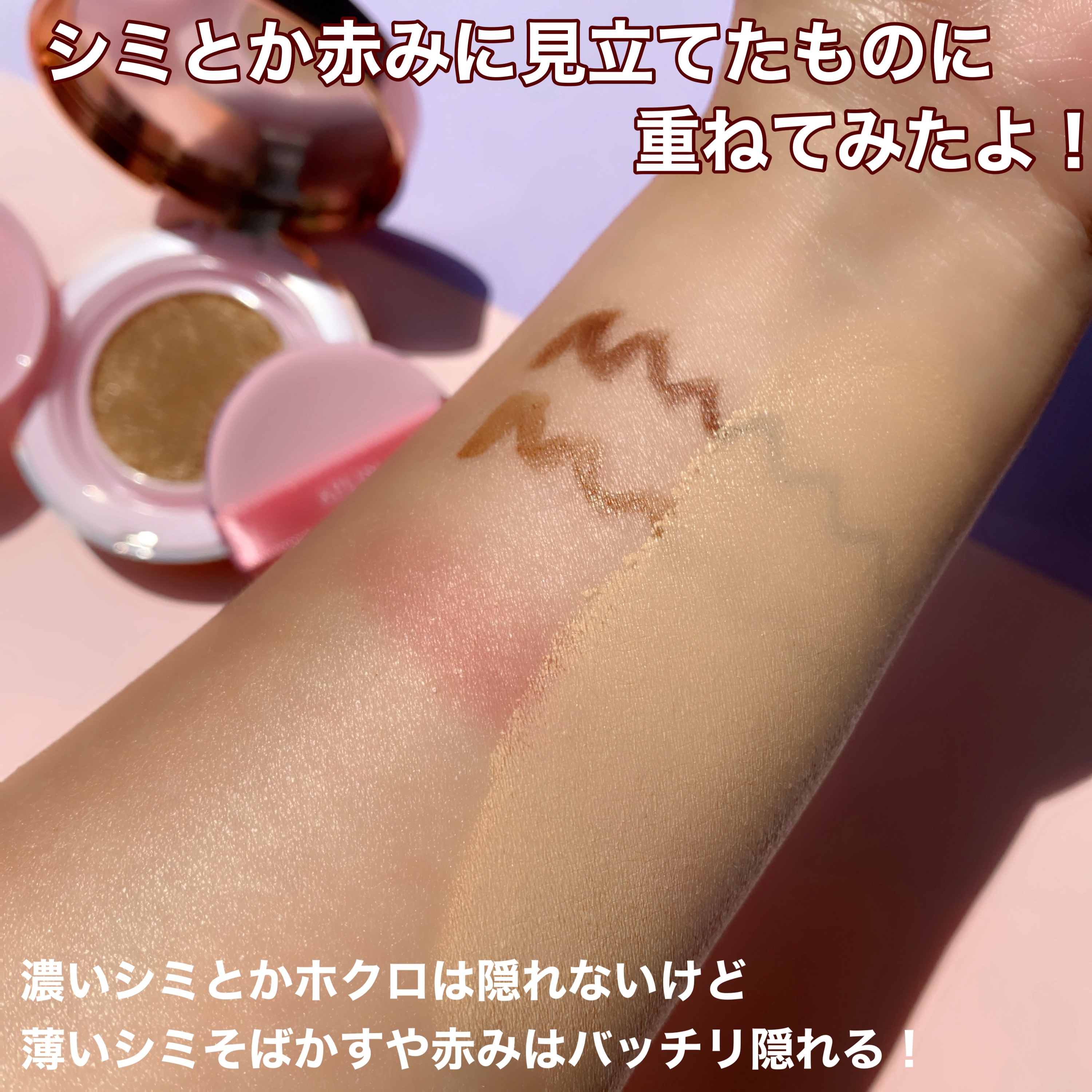 混合肌や敏感肌におすすめのピンクティーツリーカバープライマークッション カラーは『21号』を使用しました! SPF50+ PA++++の高UVカットのクッションファンデーション うるおい感がありながら、ピタッと肌に密着してくれるテクスチャ