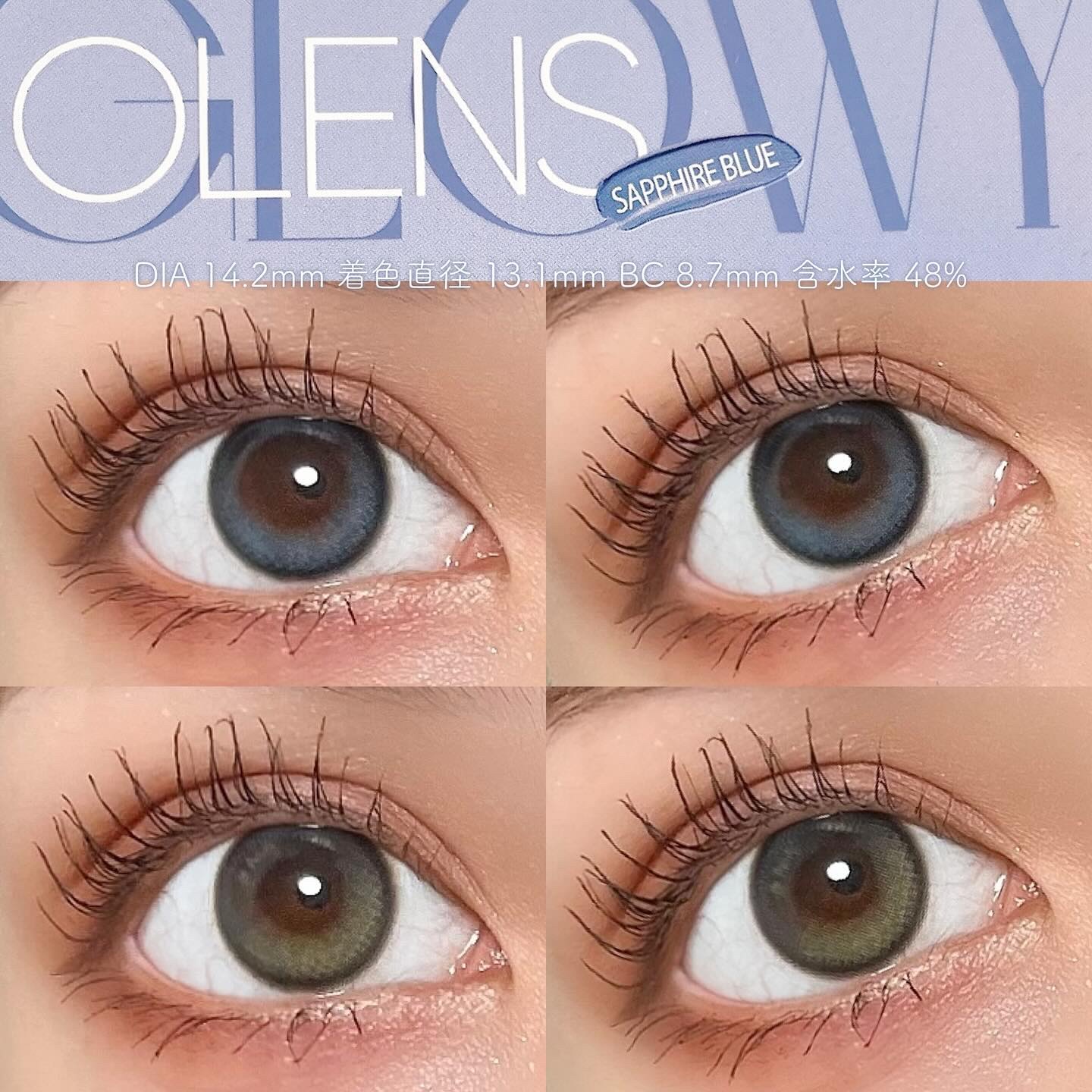 水光カラコンと言えば𝗢𝗟𝗘𝗡𝗦 𝗢𝗟𝗘𝗡𝗦と言えば𝗚𝗟𝗢𝗪𝗬🇰🇷 グローイの中でも1番王道なブラウンはダークブラウンにミルクブラウンのハイライトでま!じ!で!光の入りが超自然で群を抜いて綺麗✨💫 最近登場したブルーの水光💙濃く深みのあるブルーが深海から上を見上げてるような光り方🌊
