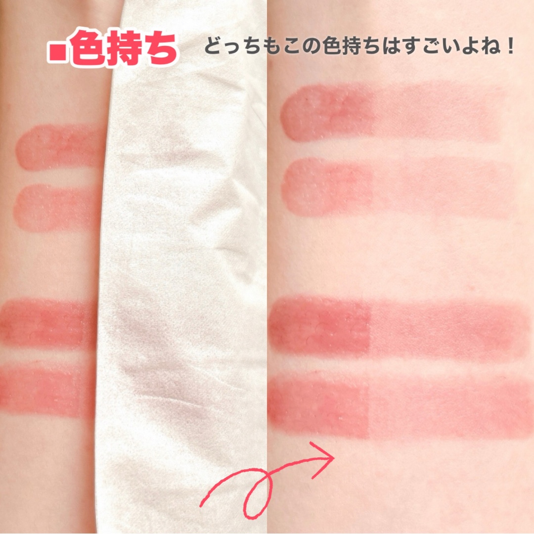 大人気のジューシーラスティングティントにブルベさんにぴったりのピンクの新色が出ました💖 26 #ベリーベリーピンク 綺麗に馴染むいちごミルクピンク 甘めかわいさ全開な鮮やか💕 27 #ピンクポプシクル 澄んだピンクに白みを一滴加えたような爽やかピンク パキッと明るく華やか💕 どちらも発色が良くて、唇がメインな華やかメイクになる💋 しっかりティッシュオフした後だとナチュラルになって使いやすいし、マスクにつきづらくなるのでおすすめです💄