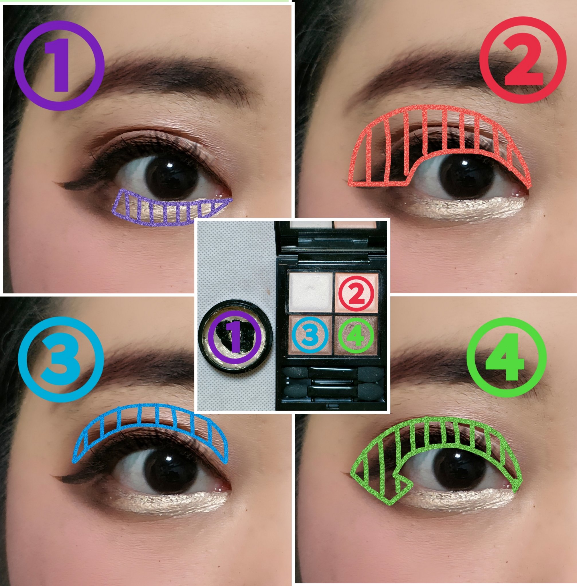 アイシャドウパレットは、URGLAM UR GLAMBLOOMING EYE COLOR PALETTE 02を、使用しました。 マスカラは、MAYBELLINE NEW YORK コロッサルボリュームエクスプレスを、まつ毛全体にまんべんなく塗ります。 リップは、wet 'n' wild MegaLast Lip Colorを、唇全体にまんべんなく塗ります。