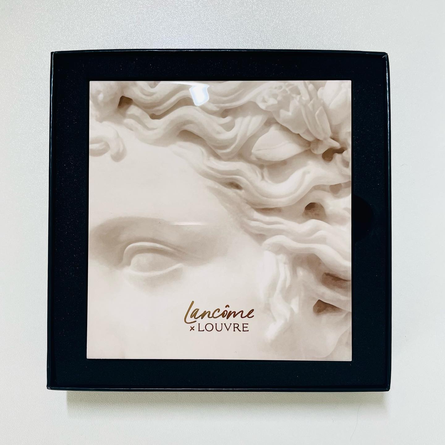 - 〈数量限定〉ランコムは、ルーヴルのリシュリュー翼に展示されているギリシャの紀元前5世紀の女性詩人コリンヌの彫刻を讃え、このアイ&フェイスパレットをデザイン。カラーパレットから溢れる詩のような美しさは、点在する彫刻が浮き彫りにするギャラリーの魅惑的な光が、静謐な中に思いがけない美しさを見せる瞬間からインスピレーションを得たもの。日の光を浴びる美しいリシュリュー翼から着想を得た5色で構成されたパレットはひと塗りでいつもとは一味違うメイクアップを演出します。 5つのカラーは、リシュリュー翼やルーヴル美術館周辺の名所から着想を得てネーミングされました。 「ピュジェの中庭」がインスピレーションとなったペリドットグリーン、ライトアップされた「クールキャレ」が放つコッパーの輝き、「マルリーの中庭」の大理石の色、「パレ・ロワイヤル」のピンクカラー。 彫刻作品がエンボスされた5色が美しく調和し、まるでアートピースのようなパレットに仕上がっています。 リサ・エルドリッジによりクリエイトされた5色は、肌なじみのよいハイライター1色と目元にアクセントを与えるアイシャドウ4色を組み合わせました。なめらかな質感で、光沢感のあるカラーから放たれるゴールドの輝き。自分だけの芸術を表現できる限定パレットで、力強く輝く洗練美を。