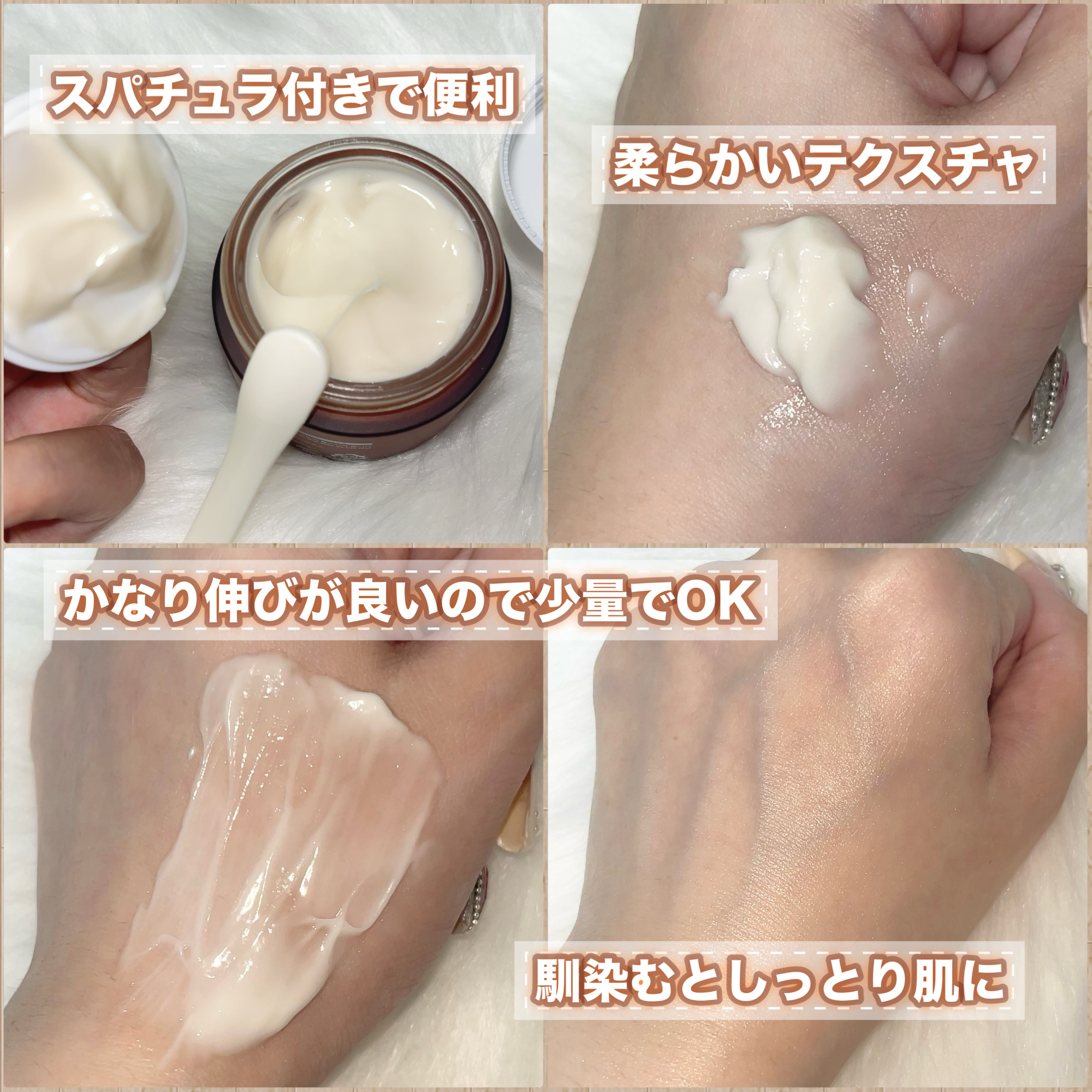 | バターのように柔らかくなめらかなテクスチャー。するする~っとなめらかに伸ばしやすく肌なじみが良いです🥰 | 詳細を見る |