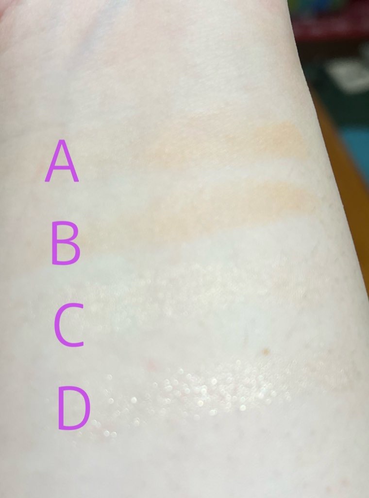 ふんわり発色なので すっぴん風メイクなどナチュラルメイクが好きな人にはめちゃくちゃオススメ 黄みが程よく入ったベージュで肌馴染み抜群カラー しかも4色とも使いやすくて捨て色もなし ミュートマットな上の2色が目元に立体感を出して 下2色がクリアグリッターカラーでうるみをプラスし2.5次元アイに