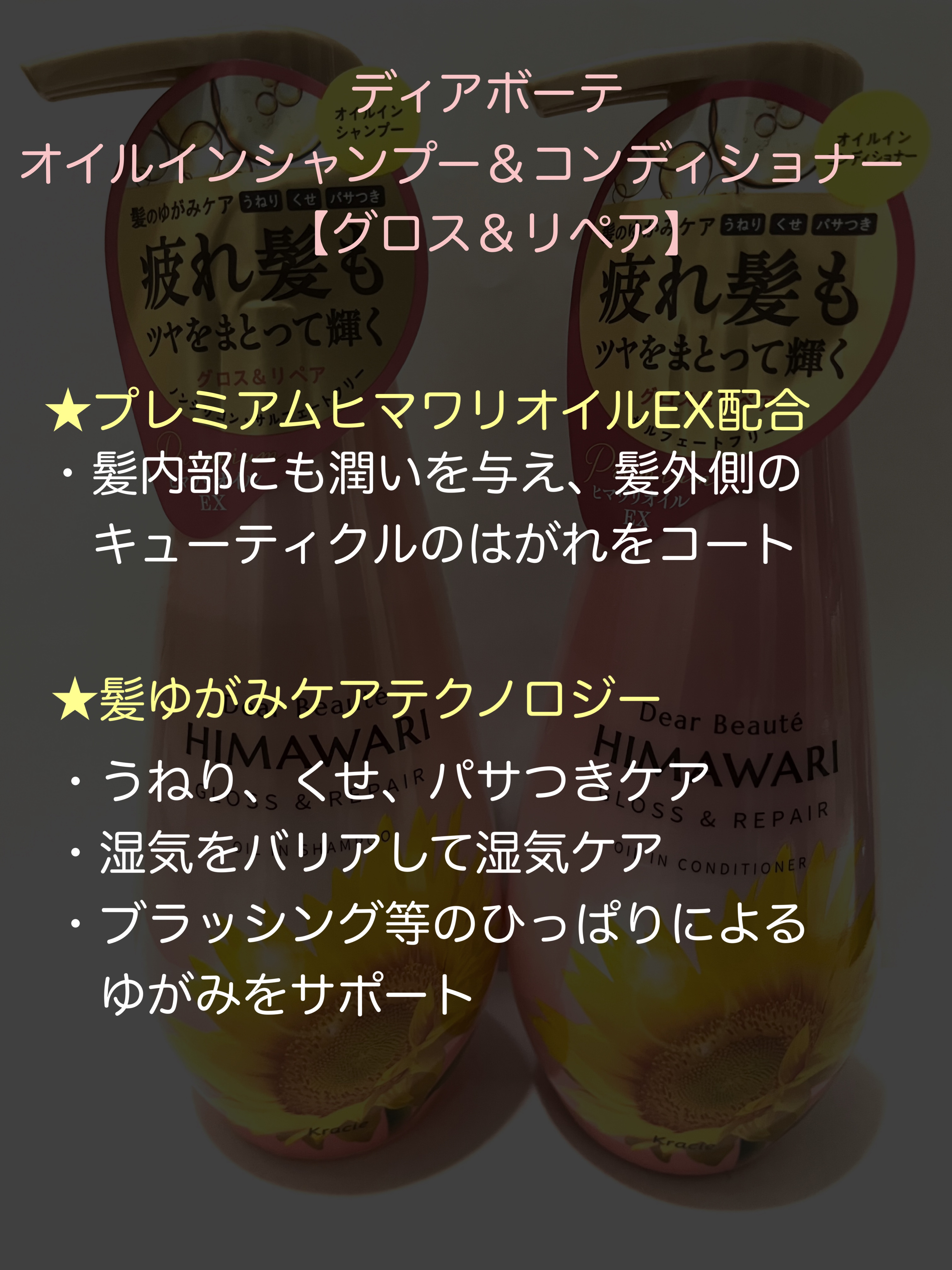 商品詳細情報ディアボーテ オイルインシャンプー/オイルインコンディショナー (グロス&リペア)