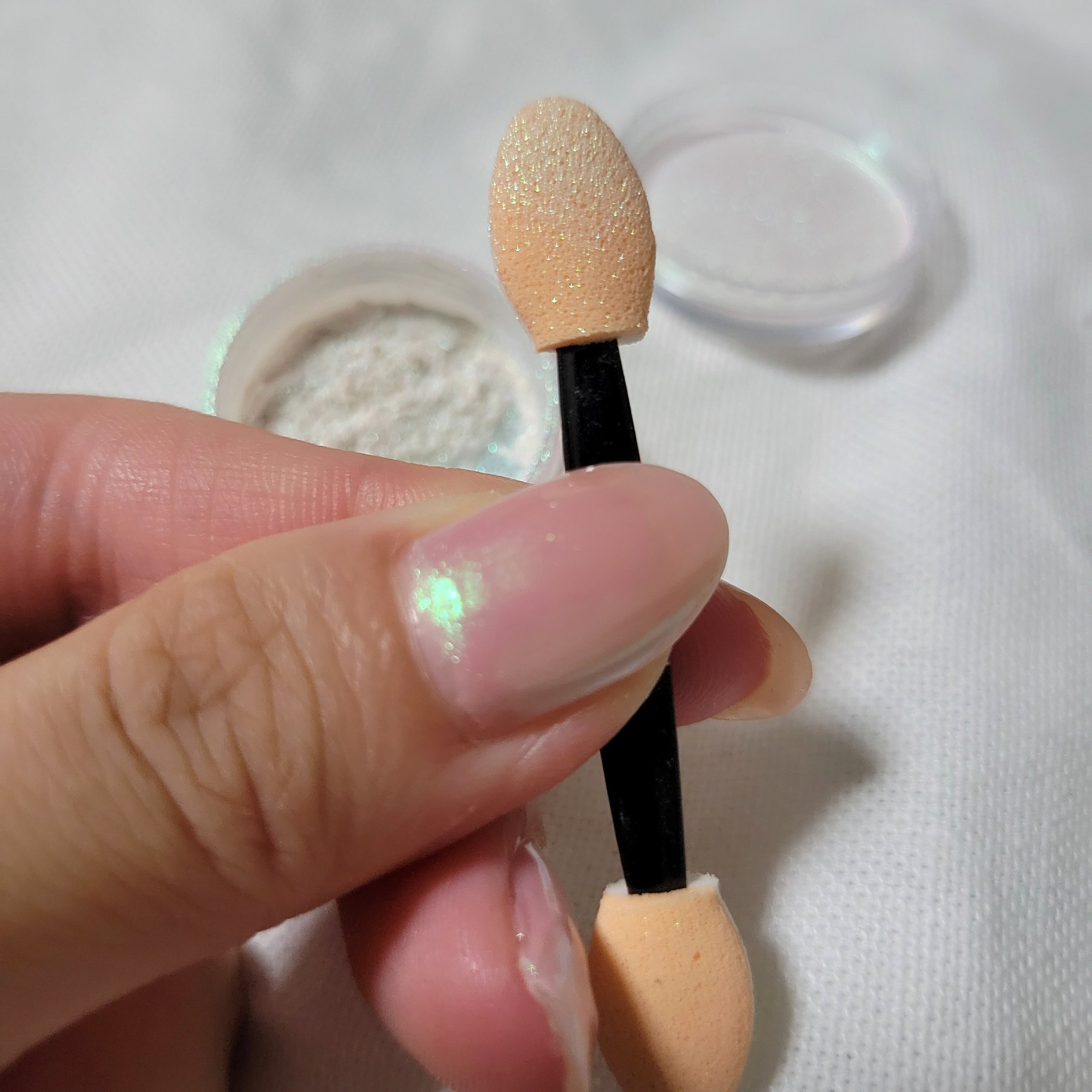 全体的に明るめのベージュの色味でどの色も使いやすい! 大きいザクザクのラメから細かくて上品なラメもあり、キラキラしてとてもかわいいです😍 グリッターの密着力がよいので、一度つけすぎるとなかなか取れないです😣