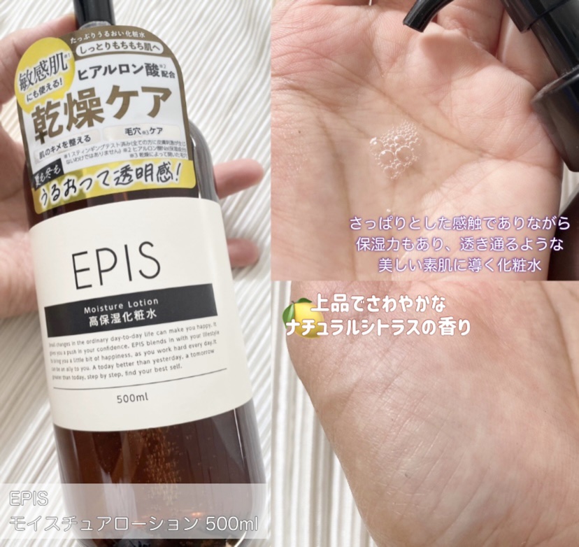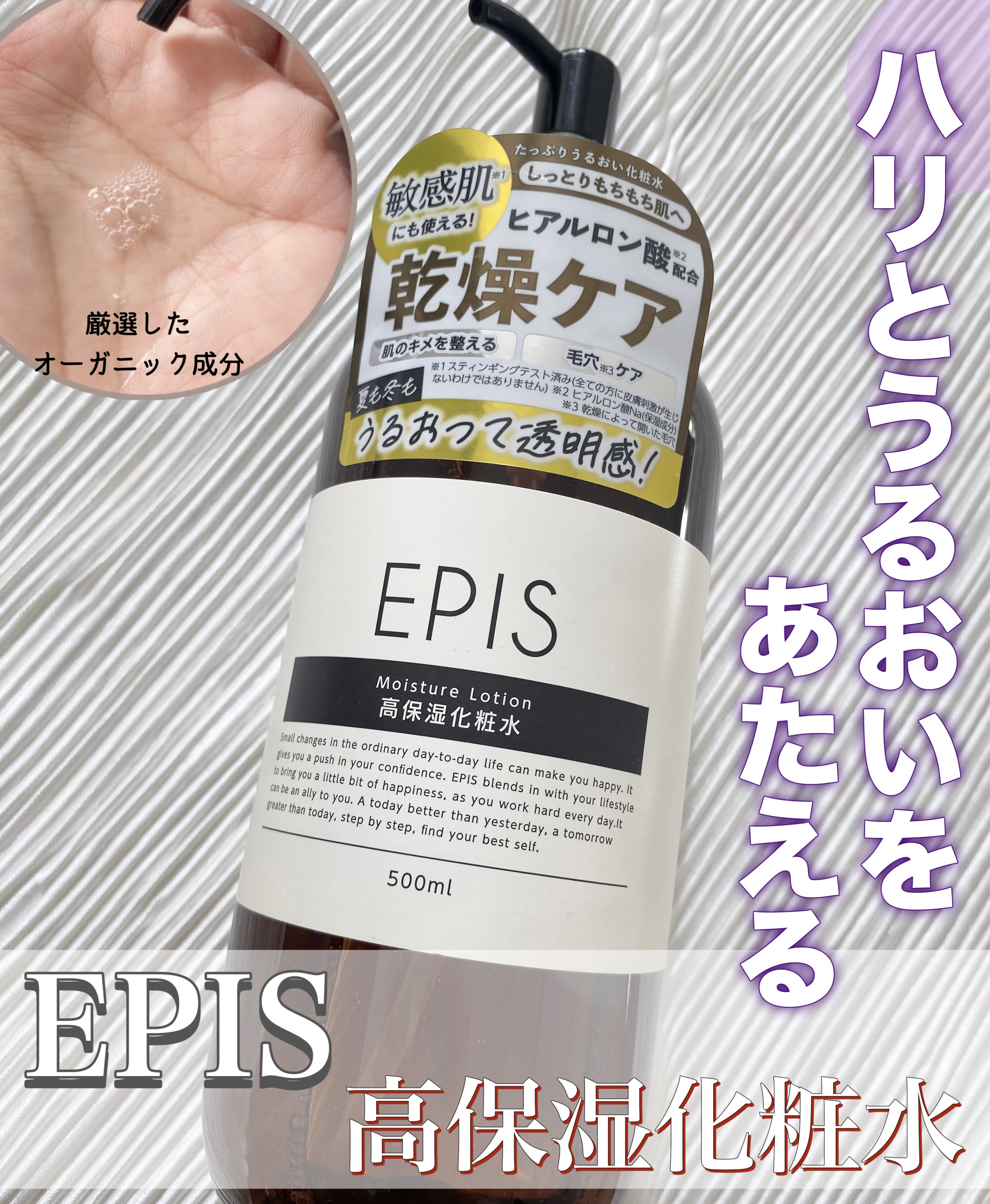 - 天然由来成分でお肌にやさしくうるおいを与えるオーガニック化粧水 EPISモイスチュアローションは、とろシャバ感のあるさっぱりとしたテクスチャーでありながら保湿力もあり、透き通るような美しい素肌へ導く化粧水です。厳選されたオーガニック成分が肌の明るさとツヤ、ハリを感じさせます。 2024年パッケージリニューアル