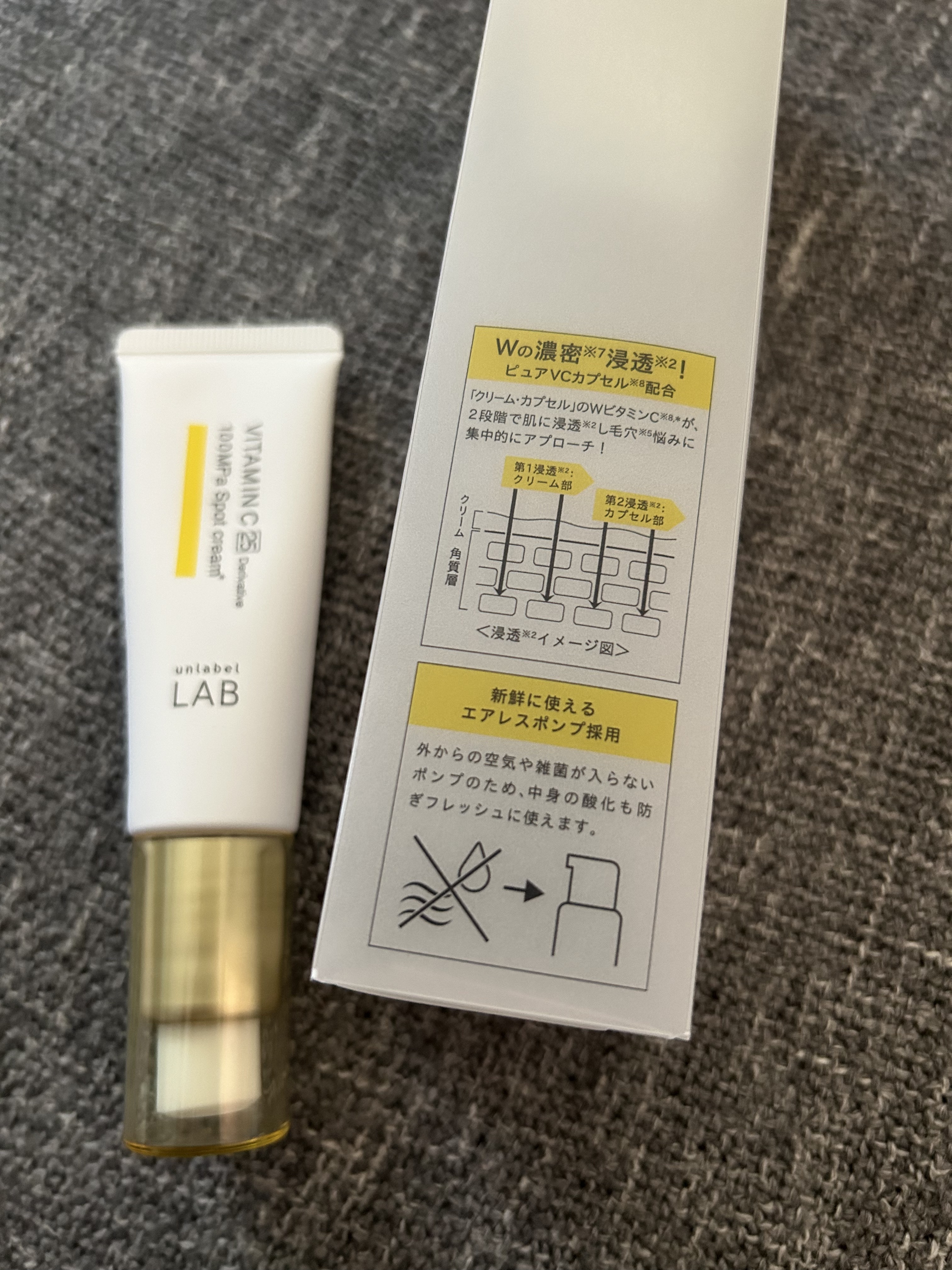 unlabelVスポットクリーム¥1,980ドンキで500円だった時に買いました。アンレーベルのビタミン特有の酸っぱいタブレットみたいな香りが好き。肌弱には刺激強めでピリついたけど、無視して使い続けてみました。薬機法的に使える表現としては「肌...