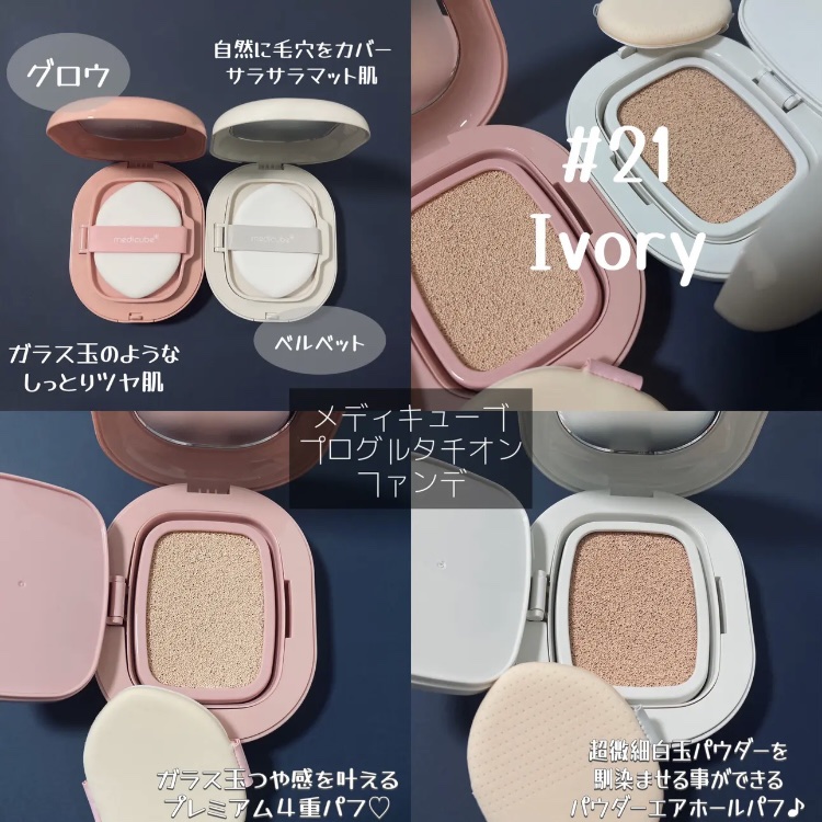 MEDICUBEプログルタチオンベルベットクッションファンデーション自然に毛穴をカバーしてサラサラなマット肌を演出✨マットとなってますがすごいマットなわけではなくほんのりツヤ感もあるように思います!美顔器や美容液で有名なMEDICUBEのクッ...