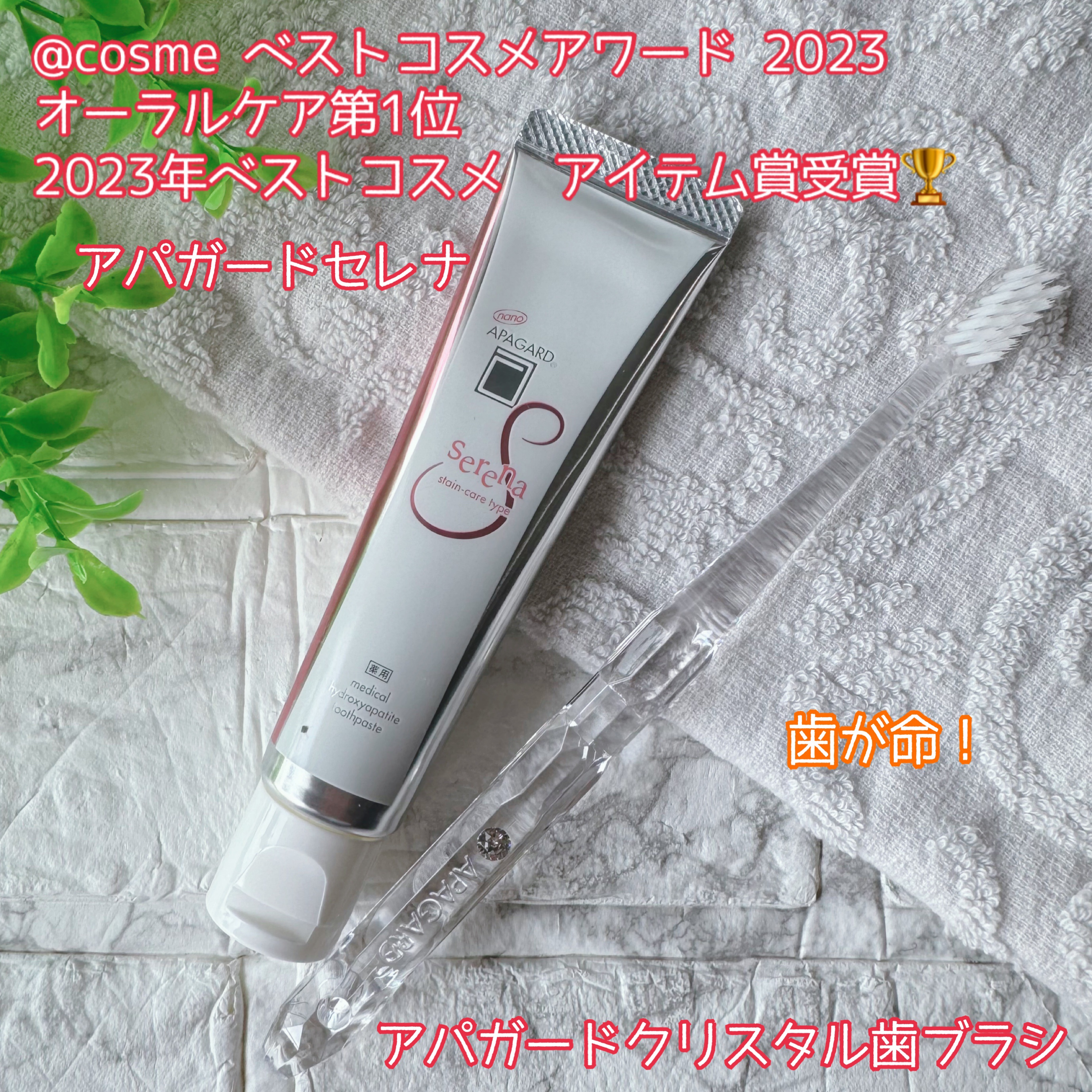 アパガードセレナ53g、アパガードクリスタル歯ブラシをお試しさせていただきました。アパガードセレナはおしゃれなデザインと、程よい大きさで持ち運ぶのにも便利です。なめらかなペースト状の歯みがきで、優しくブラッシングすることが出来ます。磨きやすく...